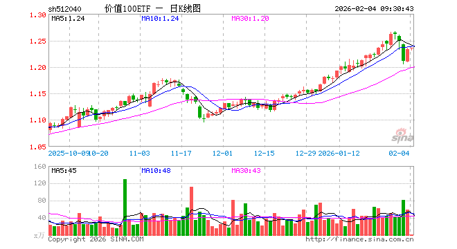 2月4日,价值100ETF(512040)开盘涨0.08%,报1.234元。价值100ETF(512040)重仓股方面,模塑科技开盘跌0.07%,亚翔集成跌1.10%,久立特材涨0.44%,云铝股份涨1.17%,伟隆股份涨0.05%,三七互娱跌1.51%,豫光金铅涨2.05%,亚普股份跌0.56%,厦门钨业涨2.88%,中国太保涨0.00%。