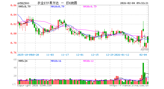 2月4日,农业ETF易方达(562900)开盘涨1.79%,报0.794元。农业ETF易方达(562900)重仓股方面,牧原股份开盘涨0.15%,温氏股份涨0.32%,海大集团涨0.23%,正邦科技涨0.63%,新希望涨0.23%,梅花生物涨0.00%,生物股份跌0.12%,大北农涨2.18%,隆平高科涨2.09%,北大荒涨1.32%。