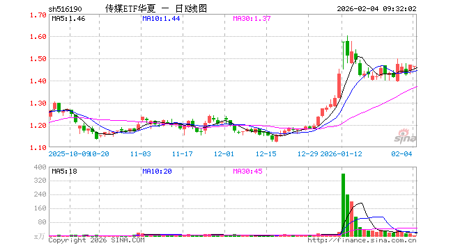 2月4日,传媒ETF华夏(516190)开盘跌0.68%,报1.460元。传媒ETF华夏(516190)重仓股方面,中国中免开盘跌0.55%,分众传媒跌0.54%,巨人网络跌1.83%,恺英网络跌1.81%,蓝色光标跌2.54%,昆仑万维涨7.41%,三七互娱跌1.51%,利欧股份跌0.98%,光线传媒跌2.28%,神州泰岳跌1.06%。