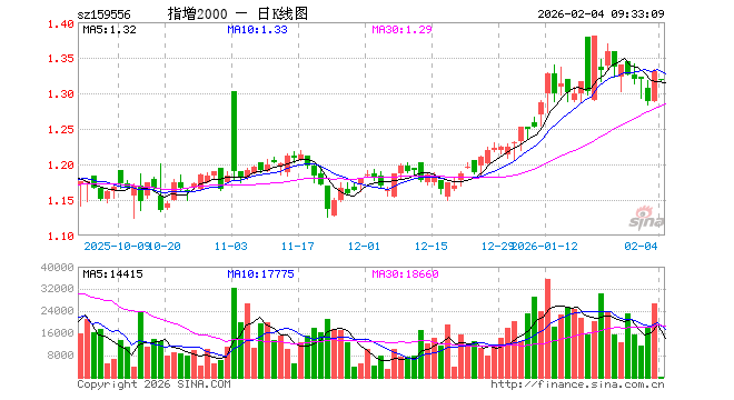 2月4日,中证2000ETF增强(159556)开盘跌0.83%,报1.320元。中证2000ETF增强(159556)重仓股方面,鑫科材料开盘跌0.26%,神剑股份涨1.87%,精工钢构跌0.22%,华联控股涨0.50%,三维通信跌1.22%,天汽模跌0.41%,东方电热涨1.58%,青松建化跌0.44%,北京利尔涨1.13%,嘉元科技跌0.77%。
