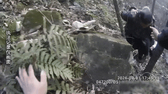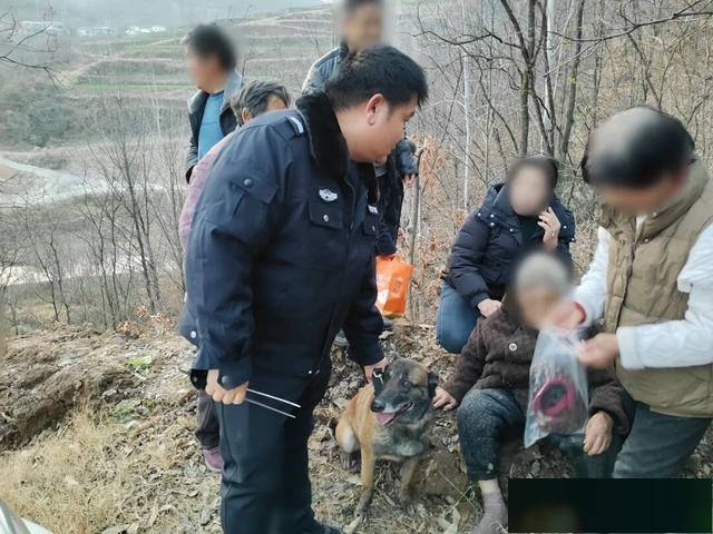 循着老人的气息,“追风”开始仔细嗅探。5点多,当搜救队伍行至两公里外的山坡旁,“追风”突然停下,紧盯斜坡方向狂吠示警。民警上前查看发现,一处长约10米的斜坡上有明显滑动痕迹,而下方是隐蔽的山洼。