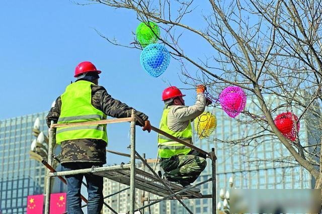 为丰富群众春节文化生活,营造欢乐祥和的节日氛围,2月3日,海东市乐都区城市管理综合行政执法局开始对南凉大街的348棵树木悬挂灯笼进行装饰,树下绿化带也将用彩色网灯覆盖。同时,还将对古城大街、新乐大街等9条街道实施市容市貌提升改造项目,预计2月10日全部完成。(全媒体记者焦惠芳摄)