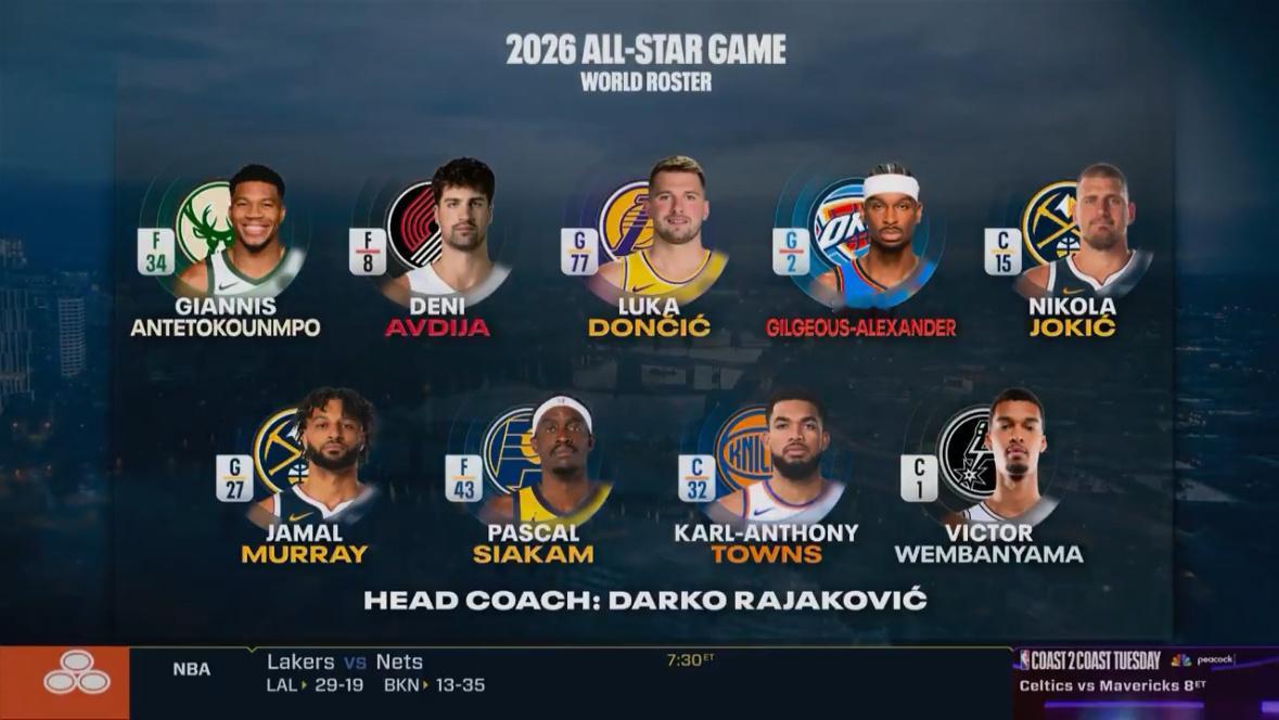 2026nba全明星 完整阵容出炉🌟世界队阵容如下: