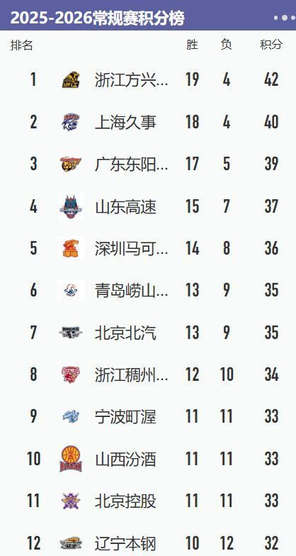 CBA积分榜最新排名出炉!广厦爆冷输球排第1:广东第3辽篮第12 随着CBA常规赛第23轮的战罢,积分榜的格局再次发生了不小的波动。卫冕冠军广厦队在客场对阵吉林队时意外翻船,以一场惨痛的失利让人们看到了他们并非不可战胜的一面。 此番失利后,广厦的战绩跌至19胜4负,尽管仍排在积分榜第一,但优势已所剩无几,上海队的紧追不舍让这一位置岌岌可危。 广东队则继续遭遇困难。上一轮他们爆冷输给了宁波,继续掉队。尽管这场失利令人吃惊,但更令人担忧的是,广东队在与上海队的关键对决中再次无力回天。 广东队如今的战绩为17胜5负,排名第三,距离广厦和上海的差距已逐渐拉开,想要在剩余的比赛中逆袭夺回第一的位置,难度已经大大增加。 对于广东队来说,失去了两连胜后的稳定性,尤其是在伤病困扰下,球队的内线问题暴露无遗。上一轮对阵上海的失利,再次凸显了缺乏强力内线的不足。 作为全队的核心,萨林杰本场比赛的表现未能有效补充内线空缺。要知道,当一个球队无法在关键时刻把握住攻防转换的节奏,面对像上海这样实力强大的对手,就注定难有好结果。 山东队也遭遇了意外,客场对阵天津队时他们未能拿下比赛,令人十分失望。虽然战绩依旧保持在15胜7负,排在第四,但与前几名的差距越来越大。显然,这支球队在面对压力时,依旧缺乏稳定的竞争力。 然而,本轮比赛中,上海队的表现无疑是最为亮眼的。他们不仅战胜了广东队,还在赛季首次对广厦队进行了强有力的冲击,提升了自己的排名。 上海队目前以18胜4负的成绩,紧跟广厦步伐,位居第二。大白边、古德温等新援的加入使得上海队成为了一个强有力的竞争者,值得期待他们接下来的表现。 四冠王辽宁队的表现令人担忧,目前以10胜12负的战绩位居第12,他们的季后赛席位已岌岌可危。辽宁队的防守和进攻都存在一定问题,队内的配合和个人状态的起伏,也让他们在激烈的赛季竞争中显得不那么有优势。 赛季的深入,CBA的积分榜竞争愈加白热化,每场比赛都关乎球队排名的变化。每支球队在每一轮的表现都将直接影响他们的季后赛前景,而对排名前列的队伍来说. 失误和失利的代价尤为惨重。接下来,广厦、上海和广东的争夺将更加激烈,而其他球队如果能够趁机迎头赶上,也有可能打乱这三队的争霸局面。 本赛季CBA的赛程不仅考验球员的技战术水平,也让球队的抗压能力和稳定性成为了胜负的关键。