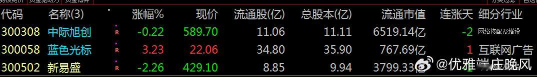 300308 中际旭创300058 蓝色光标300502 新易盛
