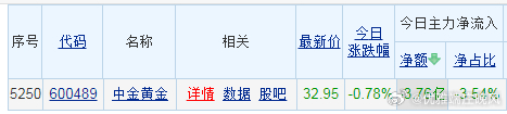 收盘价: 32.95 元。涨跌幅:-0.78%。净流入: -3.76亿