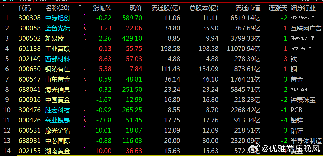 注:铜陵有色:为当日唯一逆势大涨的金属龙头,显示资金在周期股中进行结构性调仓,而非全面出逃。