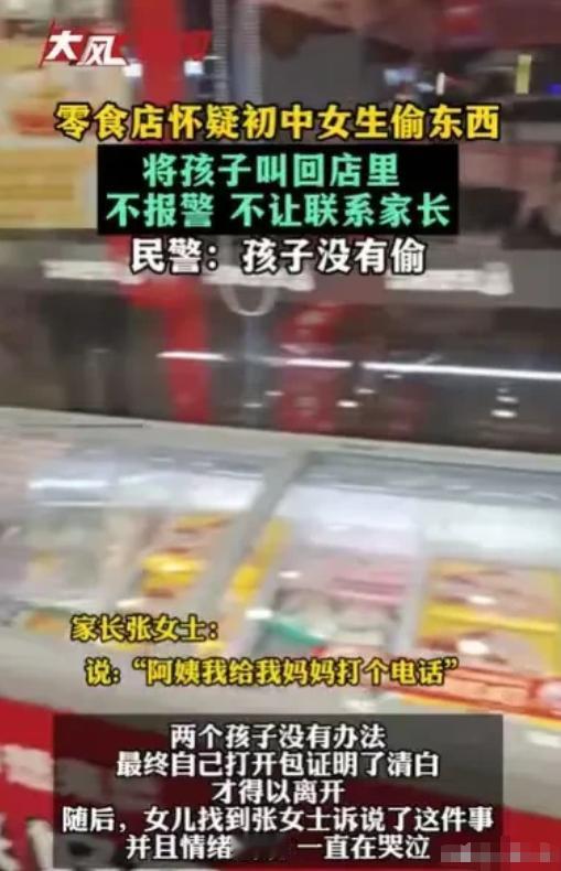 陕西咸阳, 14岁女孩去零食店,被店员怀疑偷东西,店员直接扣着女孩,女孩感到身体不舒服,让妈妈来陪伴,店员却不允许她联系妈妈,后来女孩自证清白,他们才放女孩走,可女孩被深深伤害,她痛苦地说道:“同学们都在,他们会怎么看我,我要不要跳楼得了!”妈妈为女儿讨说法,店员却报了警。 买个零食能惹出多大的祸?最近发生的一件事,真是让人看得心里堵得慌,谁能想到,一个14岁的小姑娘高高兴兴跟伙伴去买零食,最后却是哭着回家的,甚至因为这事儿还得了一块不小的心病。 这小姑娘跟同伴一块进了一家当地的零食店,挑挑拣拣选好了东西,钱也付了,出门差不多十来米,突然就被店员给拦住了,这店员也不讲究什么证据,张嘴就咬定小姑娘偷了东西,二话不说就把人强行扣在了店里。 当时店里可不冷清,还有不少其他顾客,甚至还有小姑娘的同学在场,你想想,众目睽睽之下被当贼防着,周围全是异样的眼光,这孩子当时得有多害怕,多难堪。 孩子毕竟年纪小,遇到这种突发状况,第一反应肯定是被吓坏了,身体当时就觉得不舒服,心里更是委屈得不行。 她下意识想掏手机给妈妈打个电话,让大人来给自己撑腰,处理这局面,可这店员真是做得绝,硬是拦着不让打,切断了孩子跟家长的联系。就这么把一个未成年人困在店里,非逼着她自证清白。 没办法,在那种孤立无援的环境下,小姑娘只能被迫配合,她当着店员那一双像审犯人一样的眼睛,把自己的书包拉链拉开,把口袋一个个翻个底朝天,把里面的东西一样样掏出来展示给对方看。 那场面,对于一个青春期的女孩来说,简直就是把自尊心踩在地上摩擦,最后咋样?店员瞪大眼检查了一遍,确认孩子身上根本没有店里的东西,这才发现是自己搞错了,这才慢吞吞地放人走。 你以为人放了事就完了?对这14岁的孩子来说,噩梦才刚开始,回到家,孩子的情绪彻底崩了,哭得撕心裂肺,她跟妈妈说,当时好多同学都看见她被当小偷扣那了,大家以后会怎么看她?是不是都觉得她手脚不干净?这孩子心里过不去那个坎,甚至绝望地喊出一句:“我要不要跳楼得了!”这话听得当妈的心都要碎了,也气得直哆嗦。 好好的孩子出门买个东西,平白无故受了这么大委屈,还留下了心理阴影,哪个家长能忍?妈妈二话不说,带着孩子回零食店讨说法,想要个合理的解释和道歉。 结果那店员不仅没觉得自己做错了,态度还挺横,没有任何诚恳认错的意思,反而反手报了警。 警察叔叔来了以后,那是讲证据的,调出店里的监控录像一帧一帧地看,把小姑娘进店后的行动轨迹查了个底掉,结果呢?板上钉钉,小姑娘全程规规矩矩,根本没有偷窃行为,真相大白了,这就纯属是店员没事找事,凭空想象出来的“小偷”。 虽然警方还了孩子清白,但这事留下的伤疤可不是一时半会能好的,十四五岁正是最要面子、心思最敏感的时候,在大庭广众之下被当贼扣留,还不让联系家长,这种叫天天不应、叫地地不灵的绝望感,成年人都未必扛得住,更别说是个孩子了。 一句轻飘飘的“误会”,哪能弥补孩子丢掉的尊严?哪能抹去她心里的恐惧? 从道理上讲,商家你要是真觉得丢了东西,你可以报警,让警察来处理,一个开店的,有什么权力私自扣押顾客?有什么权力限制人家的人身自由?更何况对方还是个未成年人。 不让孩子联系监护人,强迫孩子翻包自证,这既不合情也不合法,完全是拿着鸡毛当令箭,欺负弱小,这不仅侵犯了未成年人的权益,也违反了消费者保护法。 现在这事还在进一步处理中,咱们真心希望店家能别再硬撑着了,拿出点真正的诚意来,该道歉道歉,该赔偿赔偿,最重要的是得配合家长把孩子的心理疙瘩解开。 抓贼得讲证据,别凭着感觉就随便冤枉人,遇到事走合法途径,尤其是对待孩子,千万别因为你的鲁莽和无知,毁了一个孩子对这个世界的安全感。 对此你怎么看? 信源:潮新闻