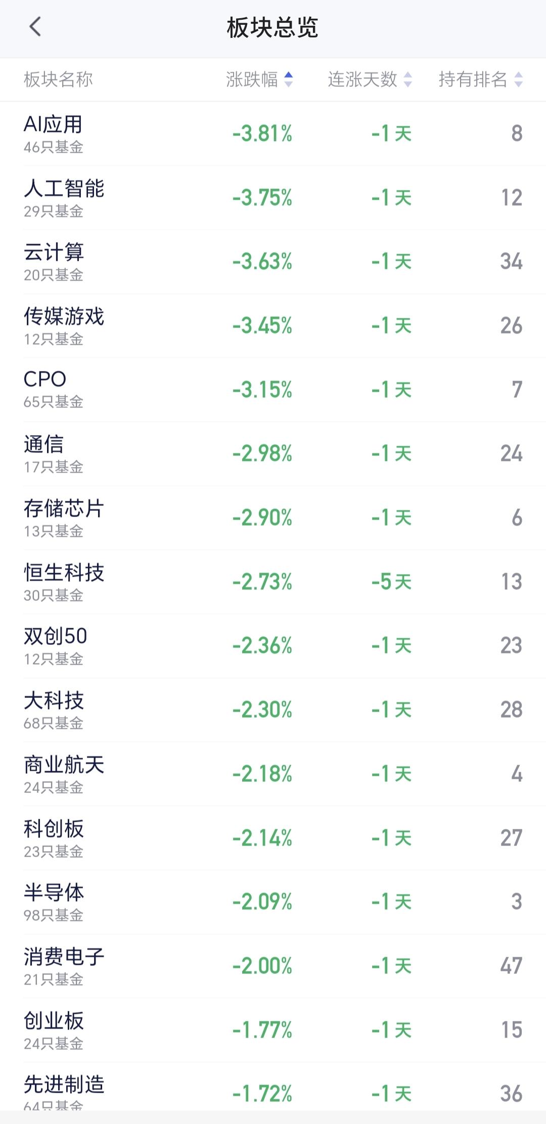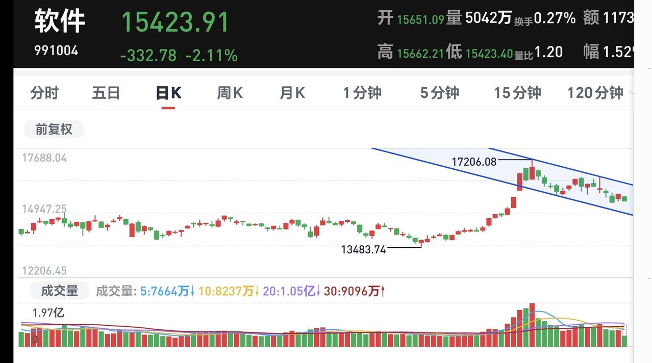 基金:AI应用板块是什么情况 今天创业板指和上证指数的走势分化,上证指数是一个平盘,创业板指下跌幅度接近了2%。中午收盘的时候下跌了1.74%,我们来看看两个指数的情况。 看下面的截图2,这是上证指数日K线图,今天还是处于日线级别短期下跌通道中,在下跌通道下轨线附近震荡,近期就是观察会不会再次跌破这个下跌通道的下轨线,进入加速下跌走势,还是上涨突破下跌通道的上轨,实现短线反转。 看下面的截图3,这是创业板指日K线图,今天虽然是大跌,但并没有跌破下跌通道的下轨线,也就是说并没有进入加速下跌的走势,近期也是观察能不能上涨突破下跌通道的上轨线,会不会下跌跌破下跌通道的下轨线。 虽然上证指数和创业板指都处于日线级别短期下跌趋势中,但这里并没有大幅度下跌的概率,因为他们的周线级别都是向上的,他们的大方向都是向上的,在大方向向上的前提之下,大幅度下跌的可能性很小很小。 许多人对大幅度下跌的概念不一样,在我的概念当中,大幅度下跌就会下跌超过30%,30%之内的下跌都不能称之为大幅度下跌,10%之内的下跌都只能称之为震荡。 今天下跌幅度最大的三个板块是:AI应用板块,云计算板块,人工智能板块,AI应用板块下跌了3.81%,持有人数在所有板块当中排名第8位。 看下面的截图5,这是软件板块,也就是AI应用板块的日K线图,现在的位置处于这个下跌通道中,昨天上涨的时候,我也是说虽然上涨,但还是处于下跌通道中,只要是还处于下跌通道中,只要是还没有能够上涨突破下跌通道的上轨线,就不能轻易说这个板块已经走好,短线想进场的人,需要耐心等待上涨突破下跌通道上轨线的时候。 看下面的截图6,这是AI应用板块周K线图,现在的位置处于这个上涨通道内,这个板块周线级别处于上涨趋势中,大方向向上,长线持有的人可以坚定持有。 很多人对估值很关心,看不到估值很着急,其实没有这个必要,因为当天的涨跌对你并不是很重要,就像昨天AI应用板块的上涨,那个上涨就是一个无效的波动,因为那个上涨并没有改变现有的下跌趋势,今天的下跌也是这样,今天的下跌也没有改变下跌趋势,如果下跌跌破了下跌通道的下轨线,那就是改变了现有的正常下跌,变成加速下跌,但今天的下跌并没有跌破下跌通道的下轨线,所以,今天的下跌也是一个无效的波动。 能不能看到估值并不重要,重要的是看到估值以后你怎么办,重要的是你在低位区域的时候敢不敢进场,重要的是你在高位区域的时候舍不舍得落袋为安。 花一秒钟点赞,花30秒钟评论就是对我最大的支持,谢谢大家的支持。