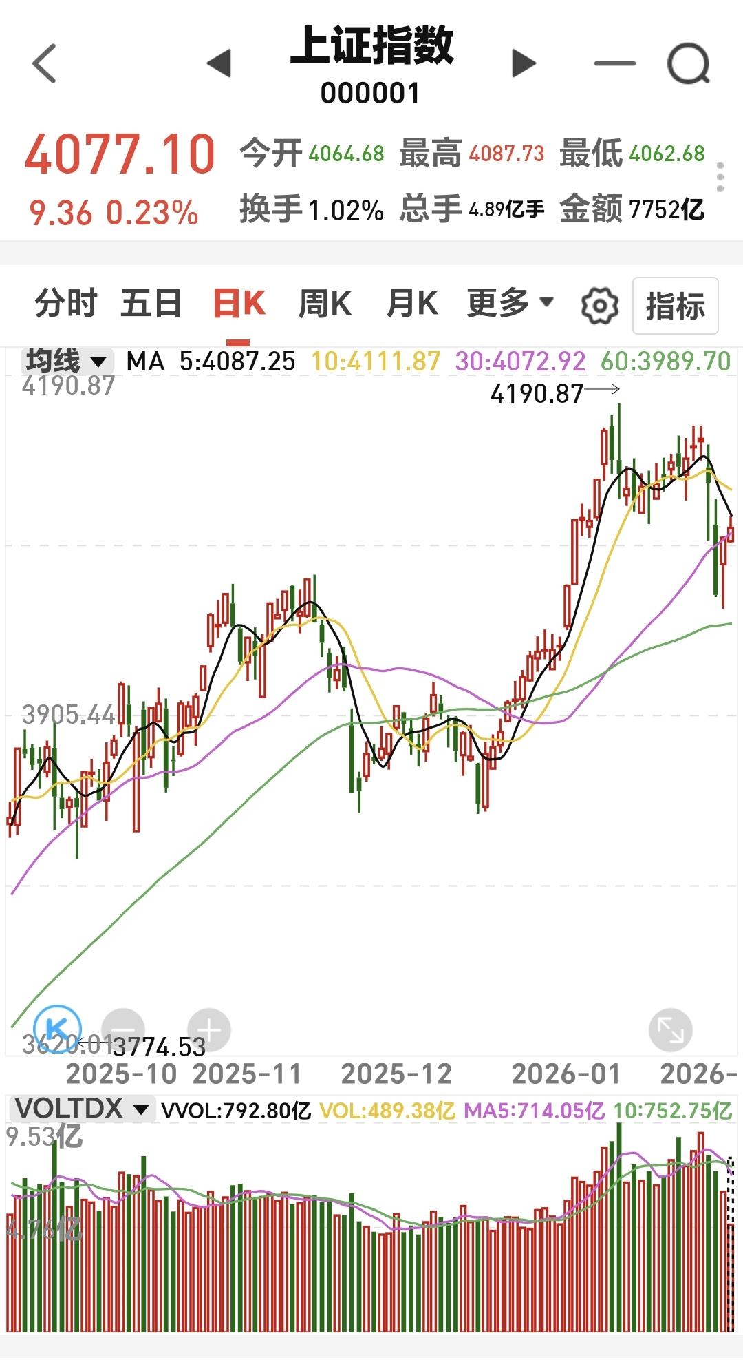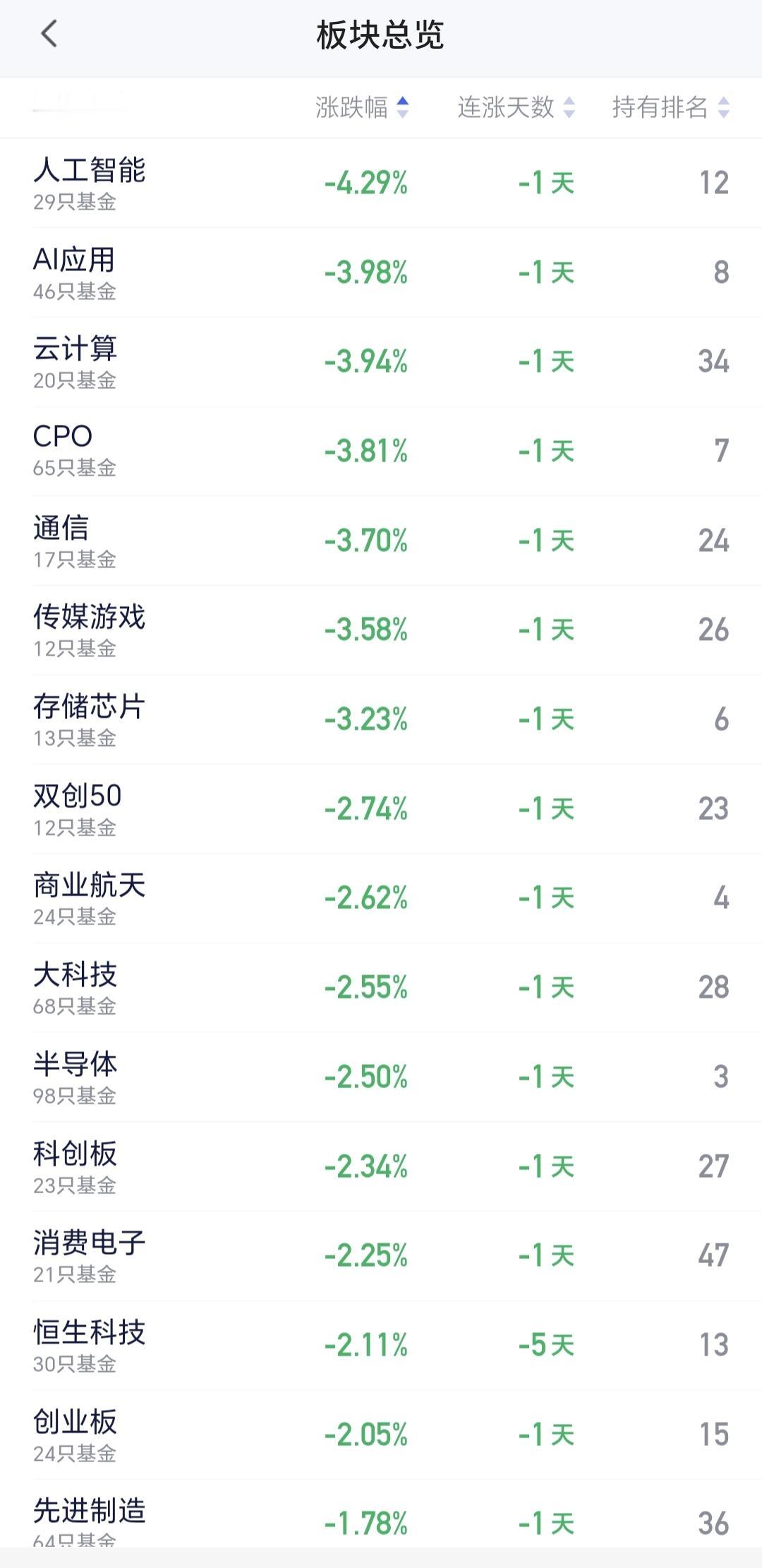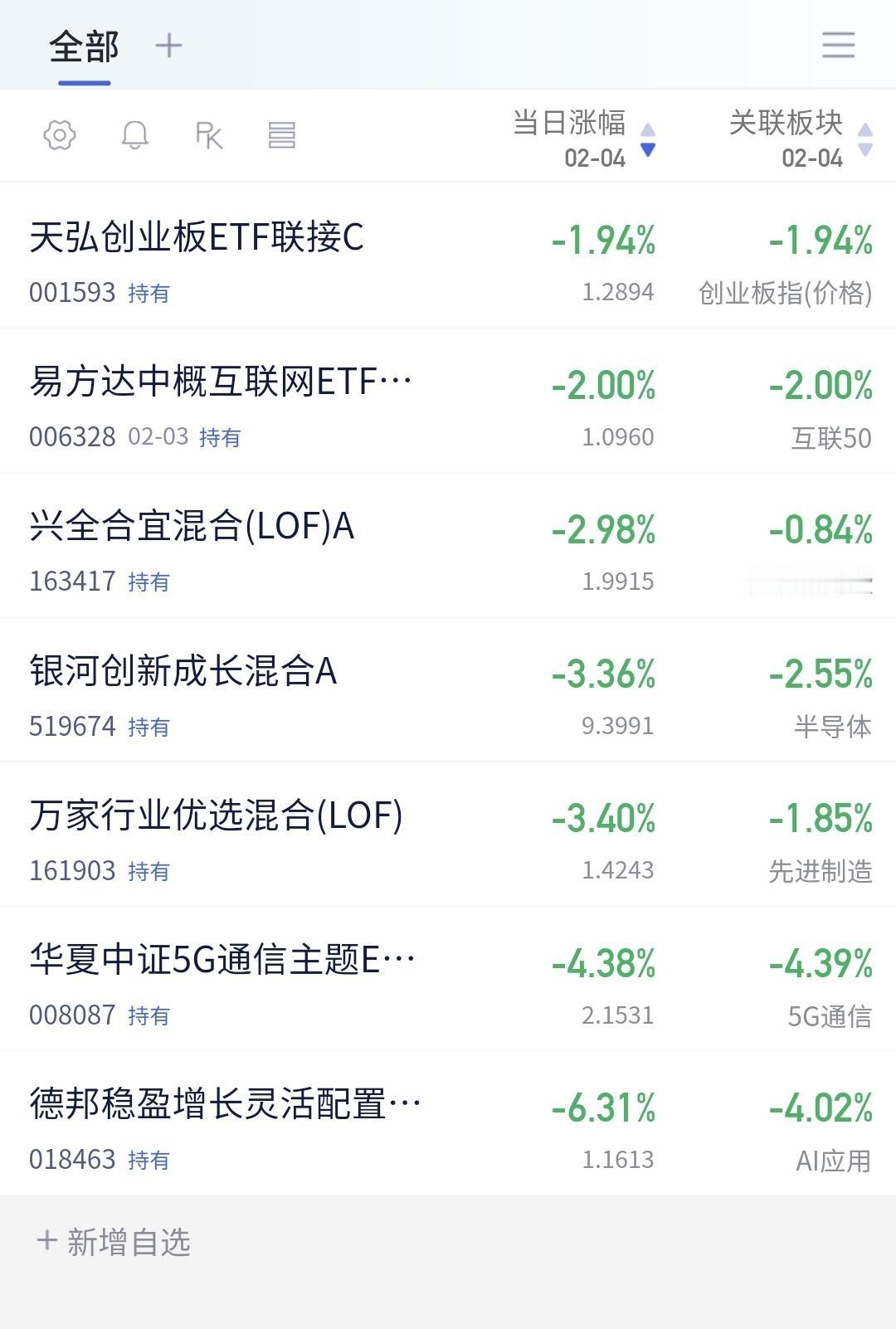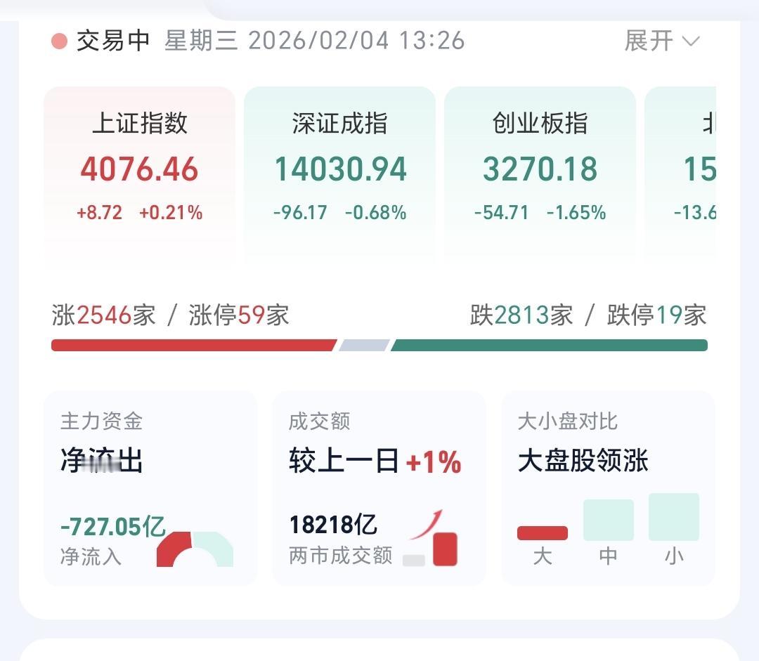 基金:人工智能板块和CPO板块应该怎么办 指数就是一个小幅度震荡走势,现在上证指数上涨,创业板指和深成指下跌,创业板指下跌了1.76%,盘中点位3266点,上证指数上涨了0.21%,盘中点位4076点,都是一些无效波动。 对于上证指数,今天只要看收盘的时候能不能站上五天线,只要是站不上五天线,就不能判断市场已经走强,即使指数是上涨的也不能这样判断,五天线是市场强弱的分水岭。 黄色线还是在蓝色线下方,但好的是,黄色线能够跟随蓝色线上涨,两条线之间的敞口并没有继续放大,两市累计成交18218亿,相比于昨天同期放量了1%,需要放量10%至上才能是有效放量,市场上涨2500多家,下跌2800多家,下跌家数超过了上涨家数,涨停59家,跌停19家,跌停家数需要十家之内才行,主力资金净流出727亿,继续在大幅度净流出。 看下面的截图5,这是主力资金进出板块的情况,主力资金净流入最多的三个板块是:光伏设备板块,光伏板块,红利板块,主力资金净流出最多的三个板块是:高端制造板块,互联网板块,人工智能板块。 持有的基金中,估值上涨幅度最大的三个板块是:白酒板块,大消费板块,上证50板块,下跌幅度最大的三个板块是:AI应用板块,5G板块,先进制造板块,估值整体1.28万元。 今天下跌幅度最大的三个板块是:人工智能板块,AI应用板块,云计算板块,人工智能板块现在盘中估值下跌了4.29%,持有人数在所有板块当中排名第12位。 看下面的截图9,这是人工智能板块日K线图,现在的位置处于日线级别短期下跌通道中,今天的下跌并没有跌破下跌通道的下轨线,也就是并没有进入加速下跌的走势,还是在正常的下跌走势中,想进场的人需要耐心等待上涨突破下跌通道的上轨线,才可以考虑要不要进场。 看下面的截图10,这是人工智能板块周K线图,现在的位置处于上涨通道中,今天的下跌并没有跌破上涨通道的下轨线,也就是人工智能板块上涨趋势并没有被改变,长线持有的人可以继续持有。 看下面的截图11,这是cpo板块日K线图,现在的位置处于上涨通道的上方,今天虽然是下跌,但并没有回到上涨通道内,即使下跌回到上涨通道内,也还是处于上涨趋势中,持有的人可以继续持有。 看下面的截图12,这是cpo板块周K线图,现在的位置处于上涨通道中,近期的涨跌都影响不了上涨通道的上下轨,也就是说,近期的涨跌都改变不了这个板块的上涨趋势,长线持有的人可以继续持有。 有些板块的下跌会改变上涨趋势,有些板块的下跌改变不了上涨趋势,所以同样是下跌,我们会根据不同的板块进行不同的应对。 今天究竟应该怎么办?我会在评论区留言。 每天下午两点左右,我会给大家分享我的观点,一秒钟点赞花,30秒钟评论就是对我最大的支持,谢谢大家的支持。