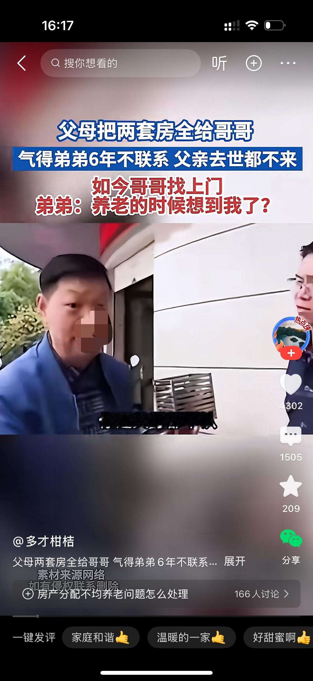 父母把两套房都给了哥哥。弟弟很生气,6年来都不跟父母和哥哥联系。如今父亲快要去世了,哥哥找上门要弟弟去最后尽孝,弟弟却还在说房子的事。哥哥怒了,你连父母都不认,父母亲要死了都不来,抢救都不来,你大不孝,你就不是个人。弟弟却叫嚣,你好意思说吗?房子没我的份,养老的时候想到我了?哎,这个弟弟真是不孝,父母没给房子是对的。