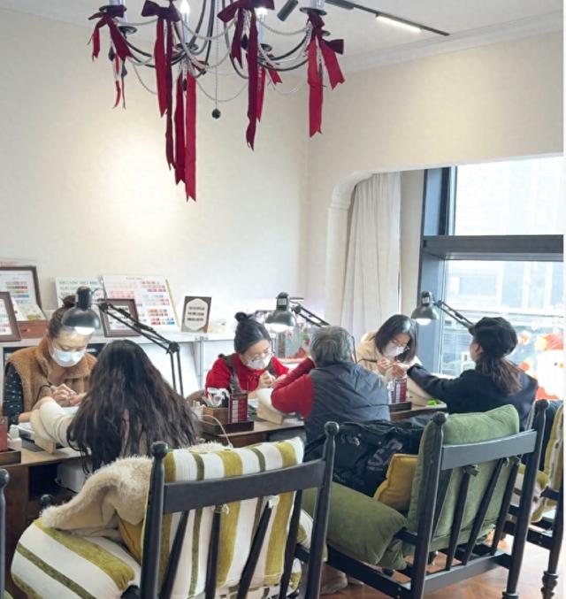 位于徐家棚滨江天街一家经营了十年的美甲店,已进入了春节模式。店主表示,目前预约已经非常紧张。“预约排期已经排到了2月14日。”她介绍,其两家门店目前每天合计能接待约二十位顾客,主要以上班族和宝妈等老顾客为主。