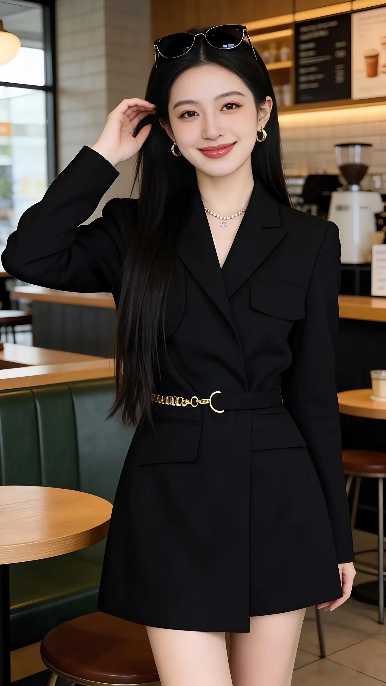 优雅钢琴演奏,黑西装与金饰的完美搭配,咖啡馆里的音乐时光。