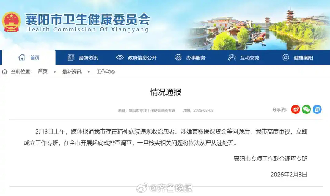 【晚报来论 | #整治医疗骗保不能局限于精神病医院#】襄阳、宜昌两地精神病医院骗取医保资金事件有新进展。2月4日,针对媒体反映的精神病医院“违规收治患者、涉嫌套取医保资金”等问题,湖北省成立了由省纪委监委、省卫健委、省公安厅、省医保局等部门组成的联合调查组,赴襄阳、宜昌开展深入调查,对所反映的问题,一经查实,将依纪依法严肃处理,追究相关人员责任。