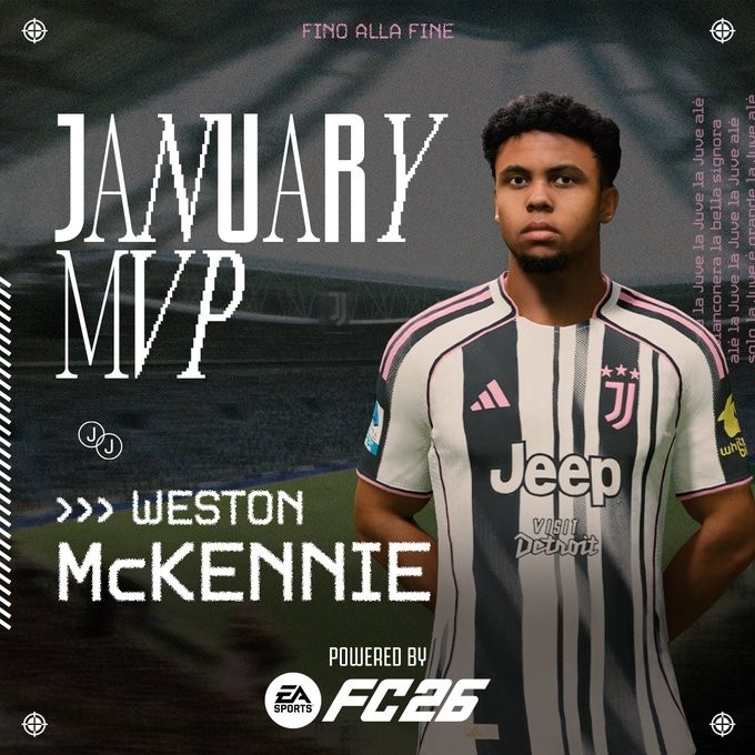 7场3球1助!官方:麦肯尼当选尤文图斯一月最佳球员