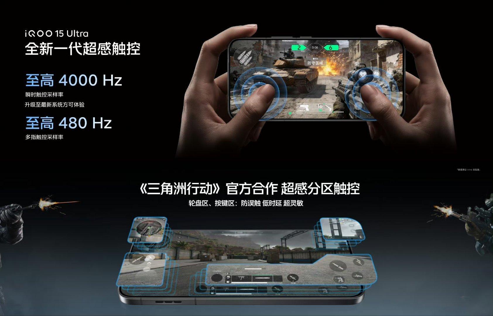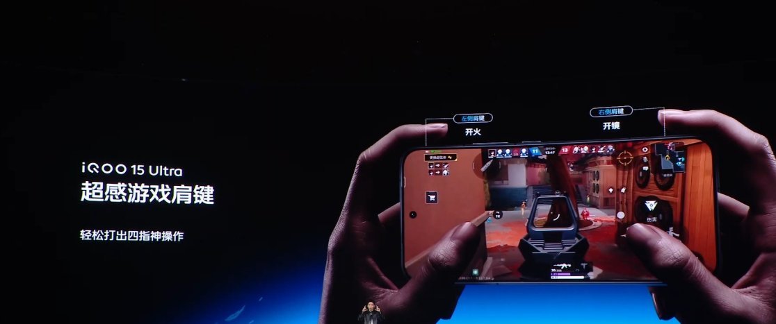 iQOO 15 Ultra 搭载超感游戏肩键,600Hz 采样率,双独立控制芯片,防手汗算法,响应速度低至 32ms,四指操作无难度了呀,挺适合游戏小白的,
