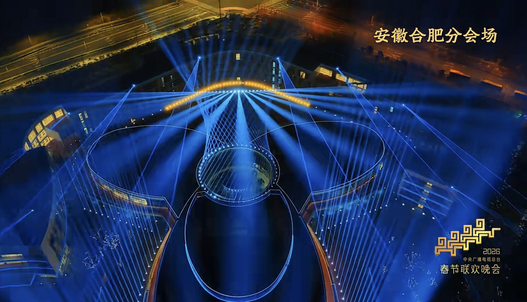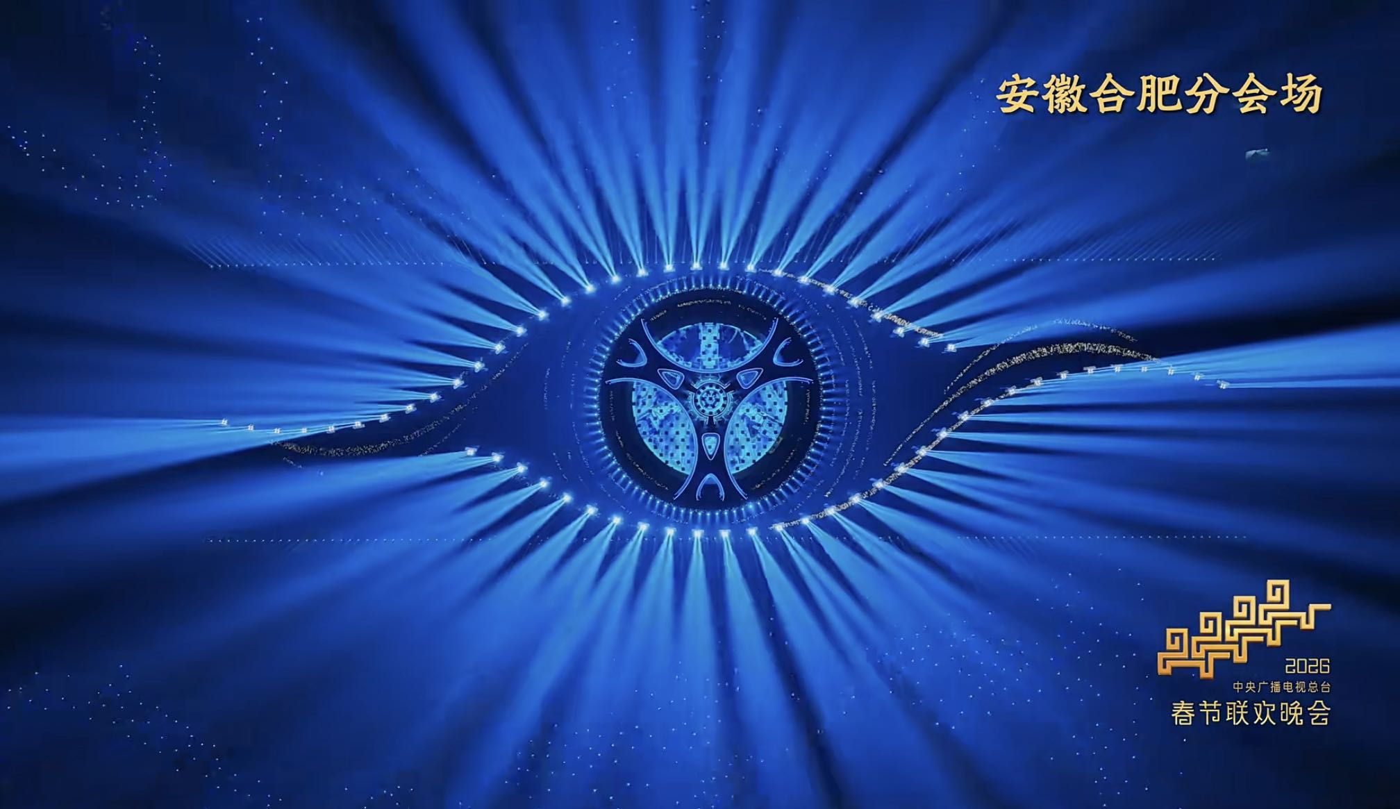 大皖新闻讯2月4日下午,2026年央视总台春晚舞美宣传片发布,展现各会场“科技赋能艺术、创意点亮舞台”的舞台美术效果。其中,备受关注的合肥分会场主舞台也露出真容。从宣传片看,合肥分会场主舞台造型像人的瞳孔,在蓝色的主色调中“凝望”夜空。