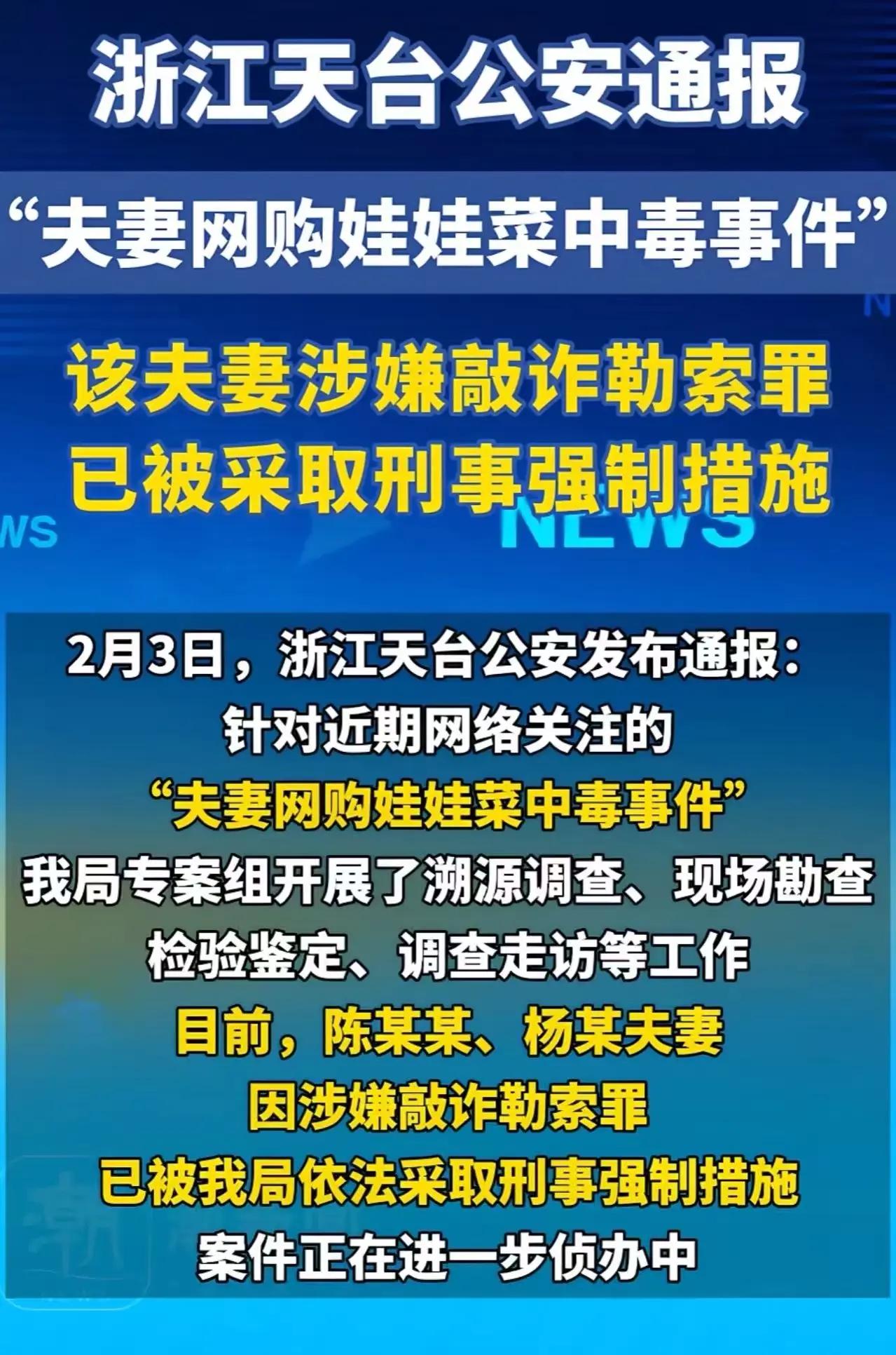 网购娃娃菜后“中毒”?荒诞闹剧背后的真相更让人愤怒! 一包普通的娃娃菜,竟然掀开一场席卷全网的荒诞剧。 起初,所有人都以为这只是一起普通食品中毒事件。夫妻二人声称网购娃娃菜后上吐下泻,商家被推上风口浪尖,无数网友义愤填膺,差评如潮水般涌来。小小的电商店铺几乎一夜之间被毁掉生意。 然而,剧情第一次反转来得猝不及防。 丈夫在医院陪护时眼神闪躲,被护士察觉异常。随后警方介入,在残留菜汤中检测出非食品类有毒物质。丈夫被带走讯问,真相渐渐浮出水面:这根本不是食品安全事故,而是一起骇人听闻的投毒案——丈夫竟对妻子下手。 就当所有人以为“毒夫”就是结局时,第二次反转更加离谱。 妻子康复后接受问询,漏洞百出,最终坦承:这一切竟是夫妻二人自导自演!他们事先商量好,由丈夫在菜中下入微量毒物,制造“中毒”假象,目的是为了讹诈商家、骗取赔偿,甚至暗中还买了短期意外险,企图骗保。 可悲的是,无辜的商家早已被汹涌的舆论淹没。店铺评分骤降,订单清零,多年苦心经营毁于一旦。而那两个自导自演的人,在法律的审视下才终于低下荒唐的头。 网友忍不住发问:一个卖娃娃菜的小电商,能有多少“油水”,值得他们赌上健康、婚姻甚至人生? 其实,这背后哪里是为了那点赔偿金。这是人性里贪婪与侥幸合谋的恶作剧,是把别人的生计当作舞台的冷漠,是互联网时代下“碰瓷思维”的极端演绎。他们以为剧情会按剧本走,却忘了生活不是电影——没有剪辑重来,每一个荒诞的选择,都要付出真实的代价。 真正让人心寒的,是在这场闹剧里,被轻易牺牲的那个微小商家。在流量为王、情绪容易被点燃的今天,有多少这样的普通人,只是因为别人的一场算计,就莫名被推进舆论深渊? 我们每一个人,都可能成为那个“商家”——在某个毫无防备的时刻,被他人的恶意或荒唐,瞬间击碎平静的生活。 这起案件最终以夫妻二人被依法处理告一段落,商家也在平台协助下慢慢恢复经营。但留下的思考却沉重得多:在事实未明之前,我们是否给了无辜者多一点空间?在情绪占上风的那一刻,我们是否忘记了——每一次盲目的转发与指责,都可能是在为一场荒唐的“演出”添柴加火? 善良不应被利用,公义更不能被编排。 守住的不仅是舌尖上的安全,更是人心里的底线。