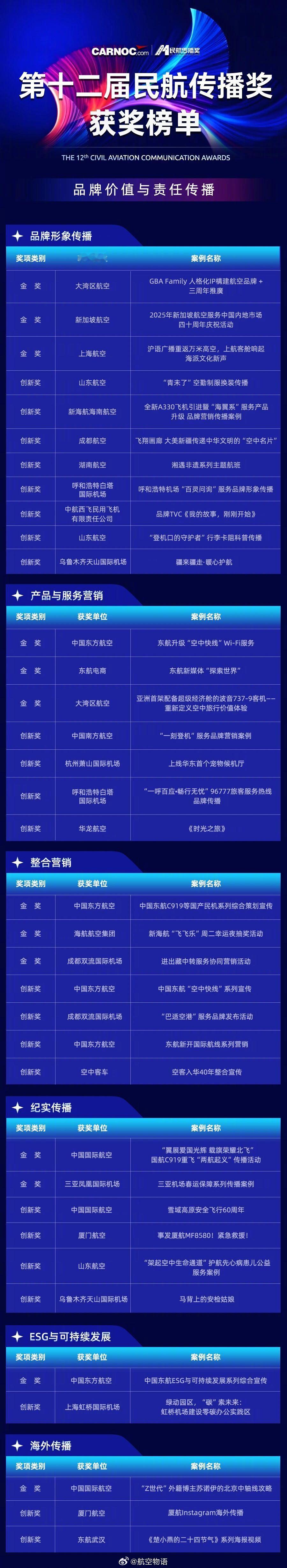 看了眼获奖名单,东航和国航拿奖拿到手发麻
