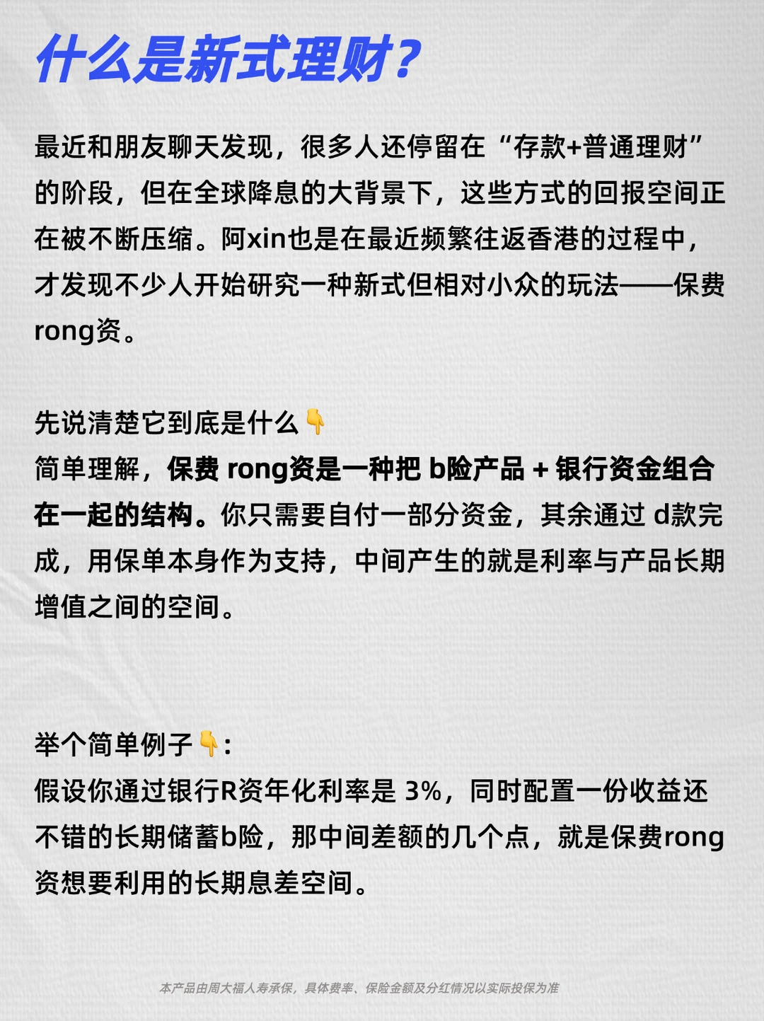 最近和朋友聊天发现,很多人还停留在“存款+普通理财”的阶段,但在全球降息的大背景下,这些方式的回报空间正在被不断压缩。也是在最近频繁往返香港的过程中,才发现不少人开始研究一种相对小众的玩法——保费 rong资。
