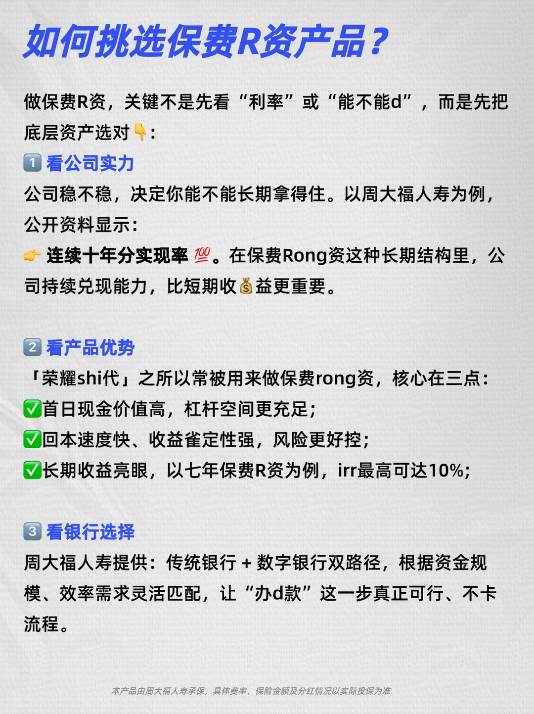 比如周大福人寿旗下的「荣耀 SHI代」,背后的公司历史分红表现稳定,长期兑现能力较强;同时产品首日现金价值高,意味着结构一开始就更稳,容错空间也更大。