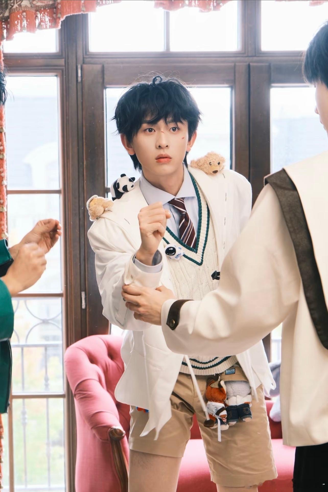 将头发梳成大人模样: 是霸总刘海放下来遮住额头: 是宝宝这个陈添祥就是如此百变!