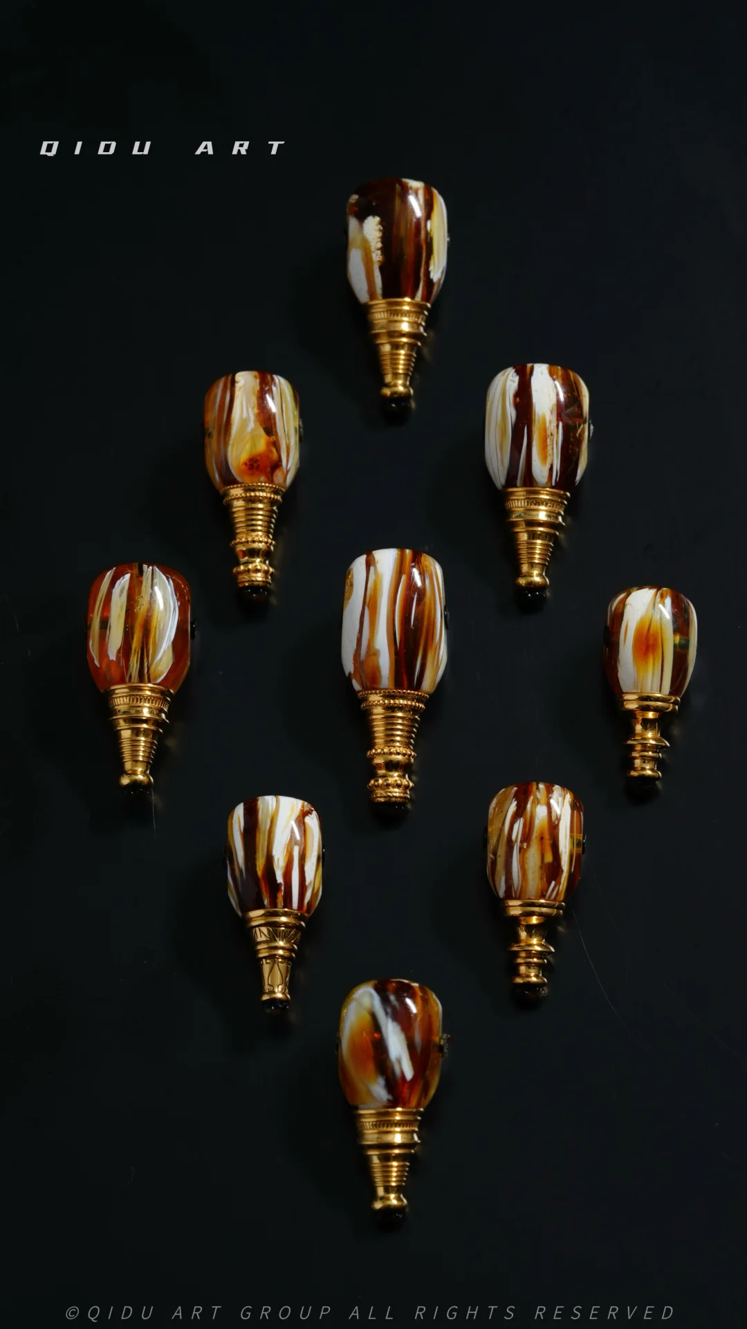 绝了绝了这批彩沁!!![喝奶茶R] 蜜蜡里的战斗机——妖孽彩沁拉丝❗️ 造物主的审美还是太顶了.. 咖啡师都拉不出这么好看的花 🤓 简直是微缩的枫糖牛奶 [咖啡R] 金塔材质18k,不易磕损变形,1:1开模定制 尺寸详情可4⃣️客服