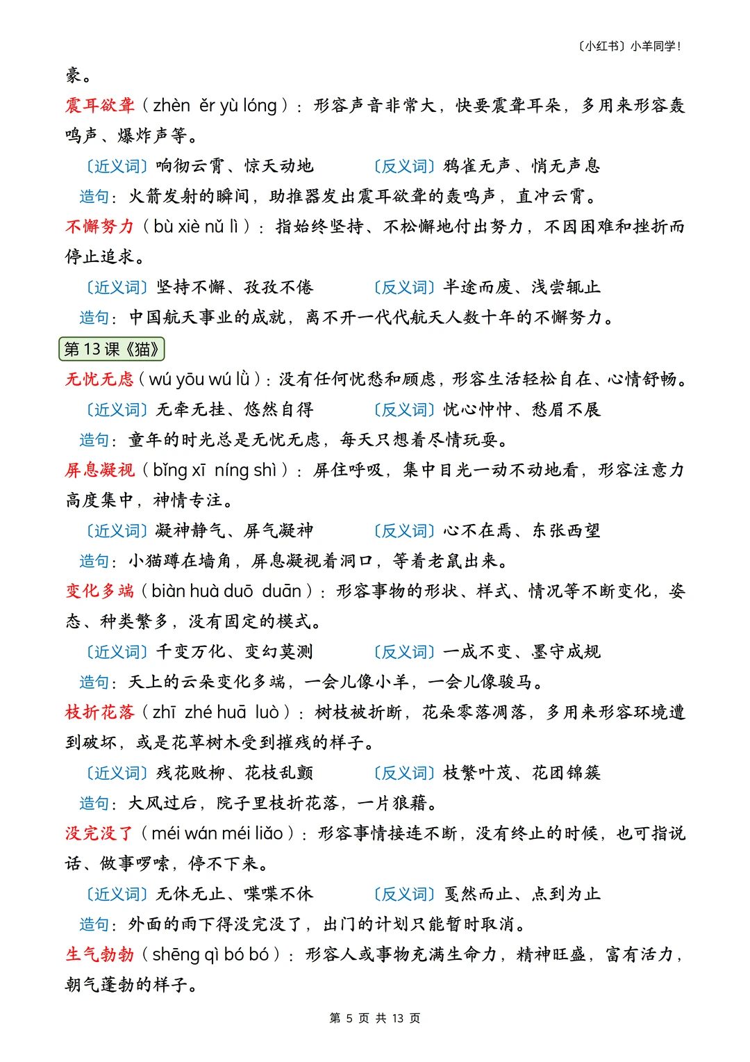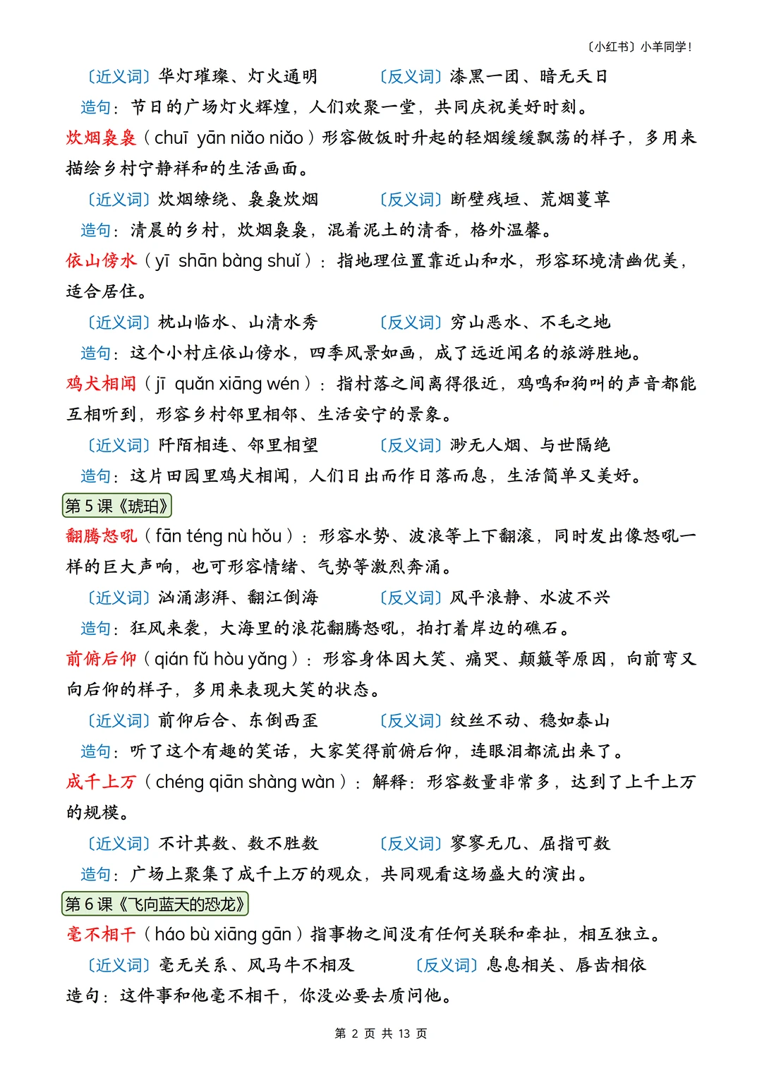 ✅ 考点齐全:标准拼音+通俗解释+近反义词+应试造句,一站式搞定默写、造句考点