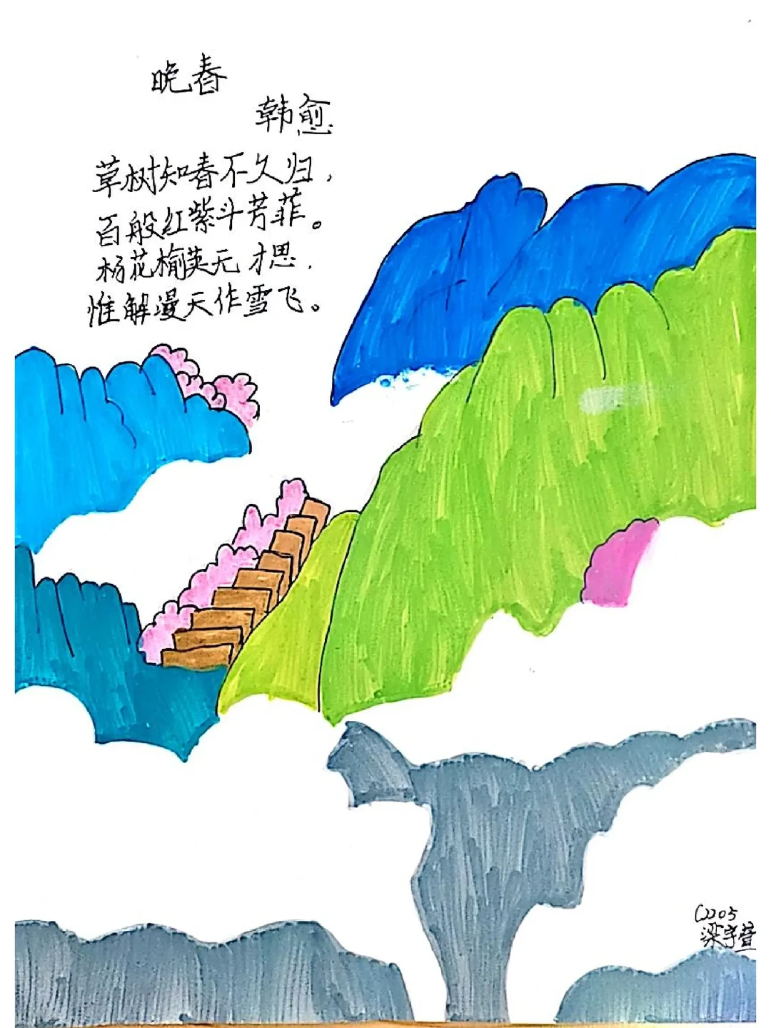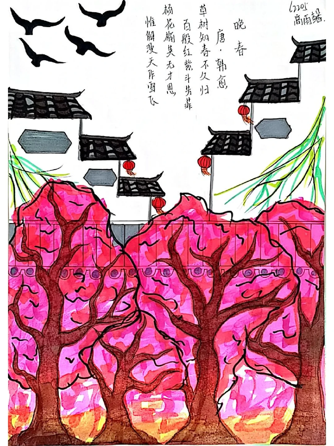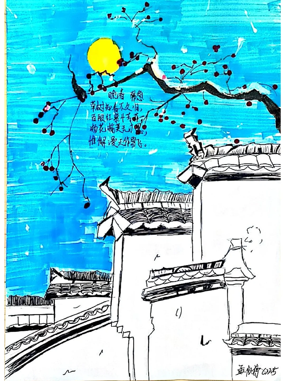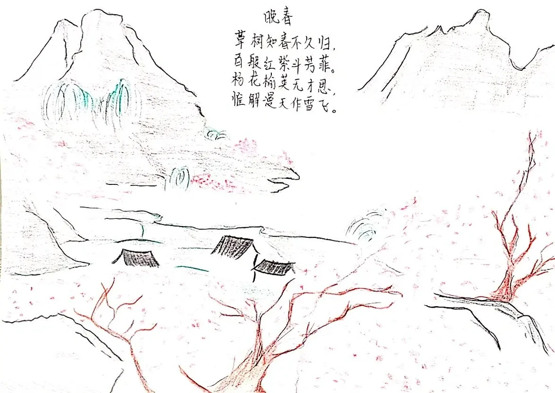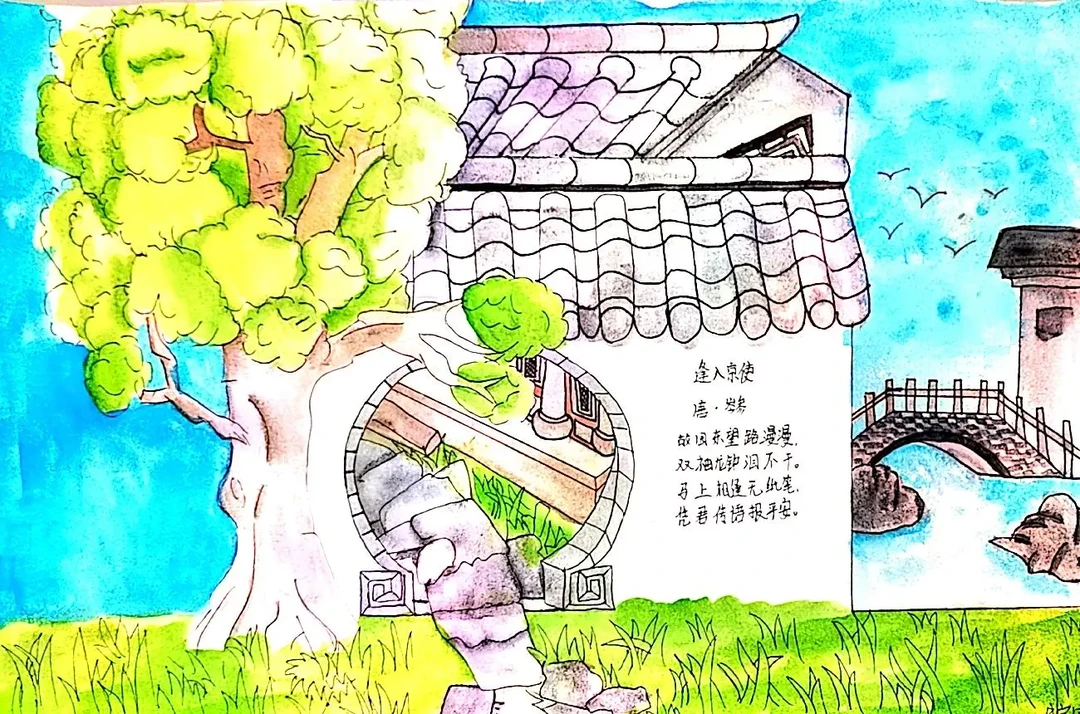 太喜欢这次的课外古诗词诵读的诗配画了,不过好像有些学生画的是课外的,管他呢