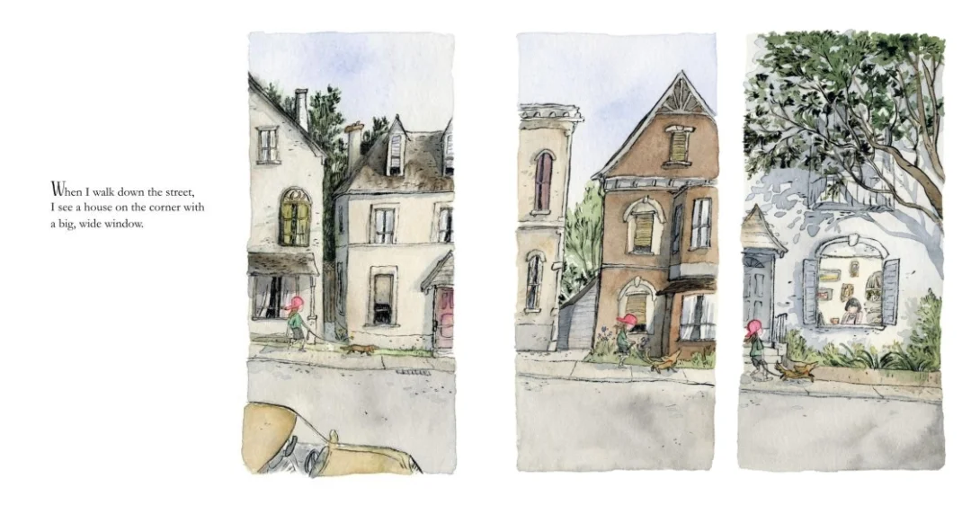 这是个关于人与人之间的连接和新视角的暖心故事。一个女孩每天遛狗都会路过街角开着大大窗户的房子,宽敞明亮的窗前总是坐着一个女人,女孩感到很奇怪,她怎么每天都开着窗户?为什么不拉上窗帘?她每天都在做什么?日复一日,小女孩和女人渐渐熟络了起来。可是有一天,小女孩路过窗户时,发现女人不在那里。原来她已经搬家了,房子正在出售。