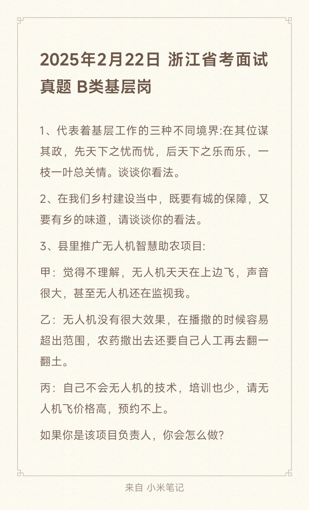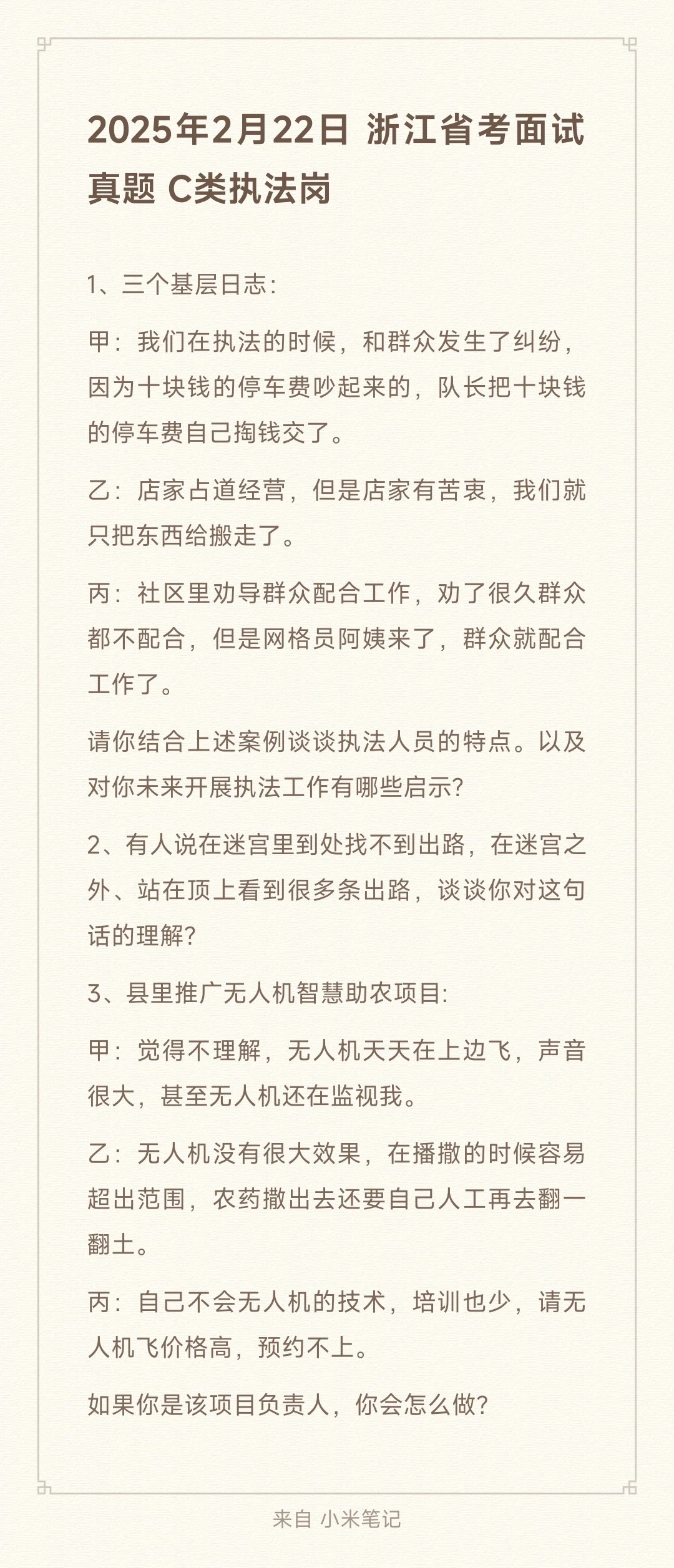 2025年2月22日浙江省考面试真题题目