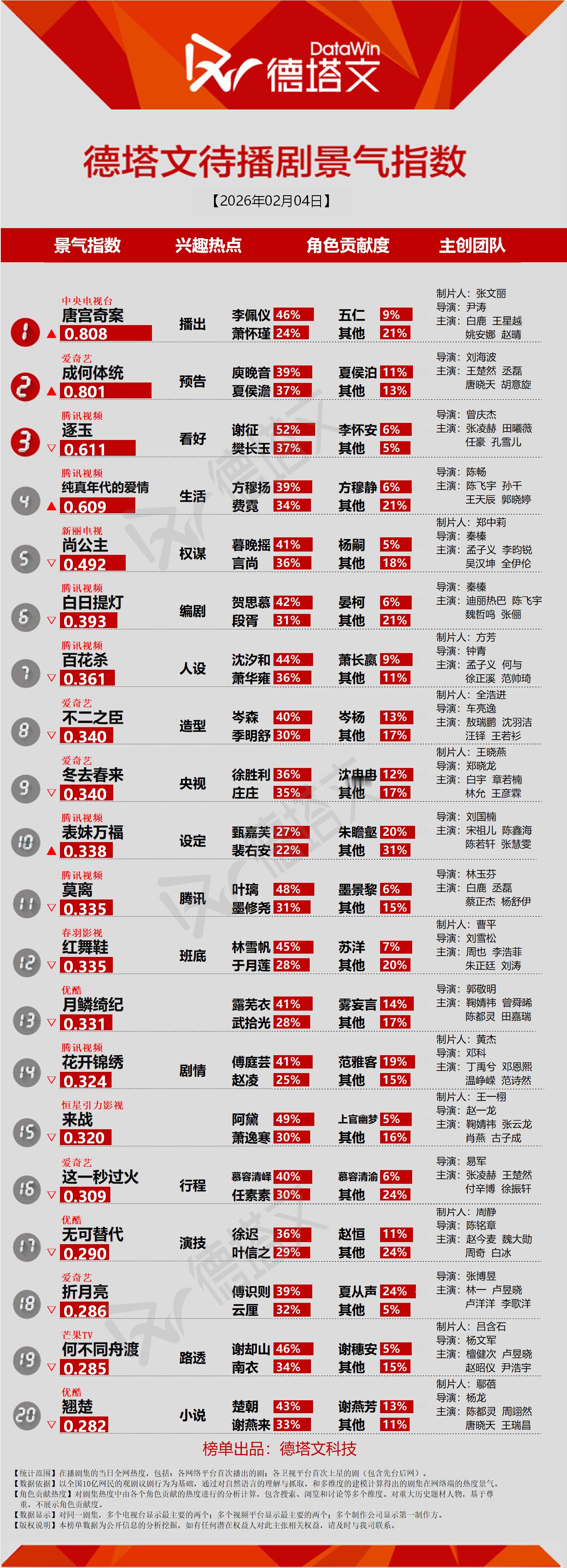 2月4日德塔文待播剧景气指数有没有新饭会直接影响指数滴檀健次谢却山 ‖檀健次何不