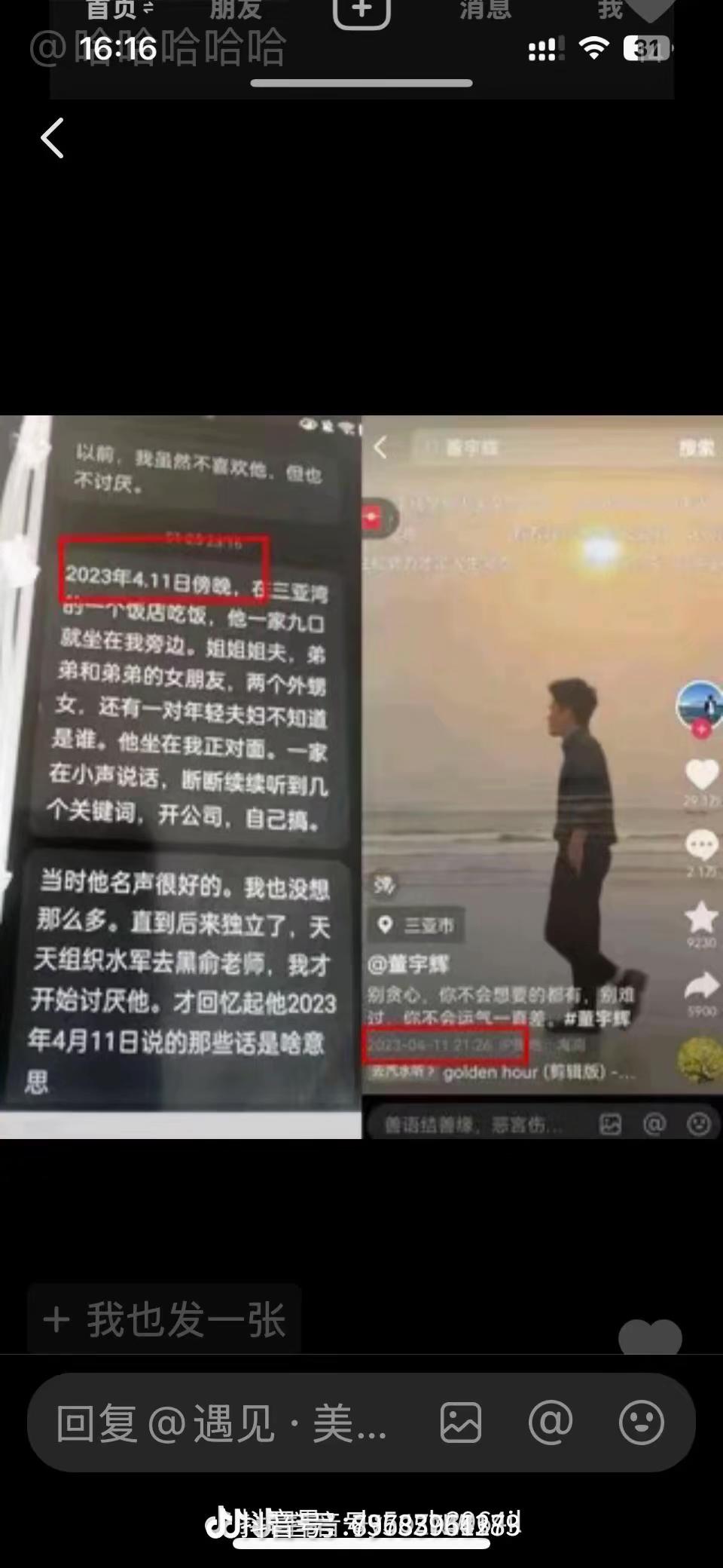 如果这些是真的,只能说董三鸡及家族都不是普通善良的农民,他们出圈不久就开始运营粉丝,准备掀桌子单干,董三鸡 再有预谋有步骤的策划如何利益最大化,如何强取豪夺公司骗俞孙了。 而俞孙总是把他当年轻人孩子看,寄予了全部的信任和资源。甚至以吉林行小作文为引发动的小作文事件后,俞老师还认为董三鸡善良和对他忠城,对他给予了一切,而把孙老师做为牺牲品了。 善有善报恶有恶报不是不报不到时侯,相信天快亮了,受压迫的人翻身了,网络黑社会该上审判台了!