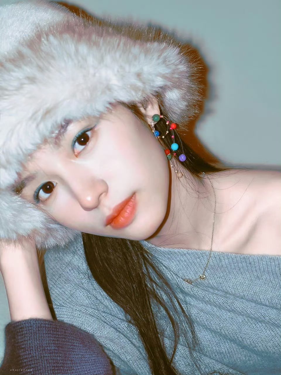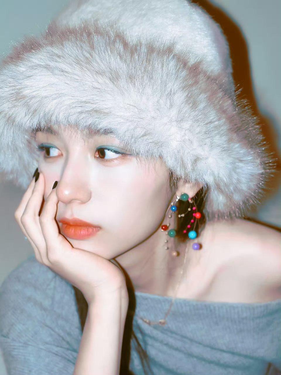 ✨周也冬日氛围感拉满!毛茸茸帽子搭配彩色串珠耳环,甜酷风拿捏