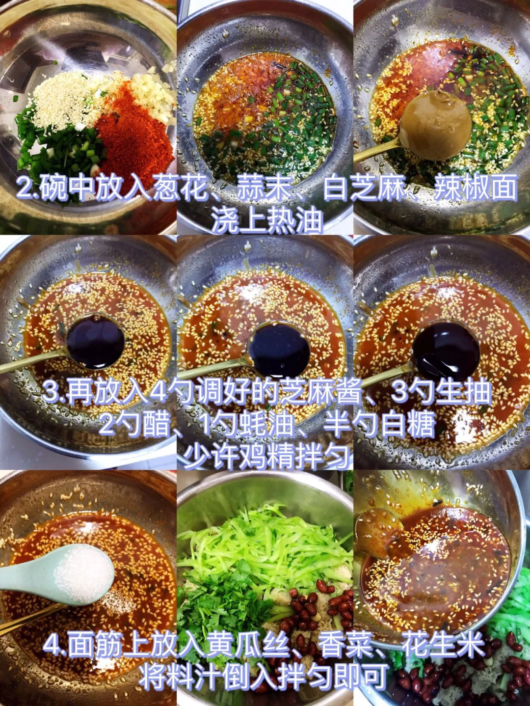 [赞R]食材:干面筋、黄瓜、香菜、葱花、白芝麻、芝麻酱、花生米(可不放)