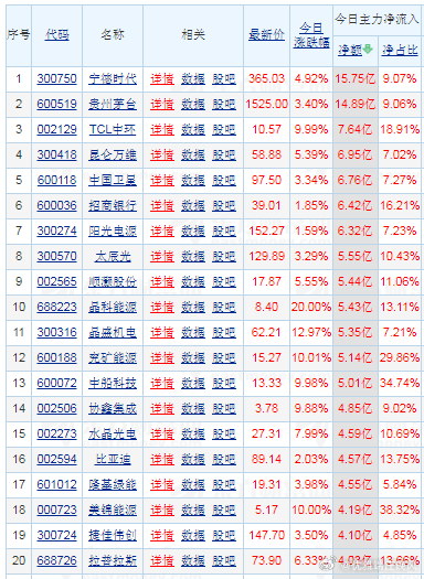 【财富晚茶】潜龙浮出水面:02.04主力资金:净流入前20股票