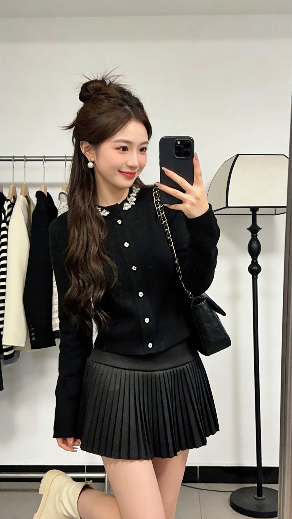 周末和Danny逛店,她这套钻领针织开衫+百褶裙套装直接戳中审美点!正肩版型修身显瘦,钻领细节精致又吸睛,高腰半裙悄悄拉长比例。不管是窗边雪景里的温柔,还是试衣间的随性自拍,都把秋日氛围感拉满。 晚上压马路时这套又秒变甜酷风,米白短靴一搭,通勤约会都适配。2026新款的质感肉眼可见,想把秋日氛围感焊在身上的姐妹,这套闭眼入不踩雷~ 今天穿什么 韩系穿搭 摆脱路人感穿搭思路 秋冬万能穿搭配色公式