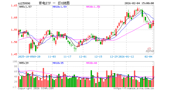 2月4日,家电ETF(159996)涨0.95%,成交额1.30亿元。当日份额增加5600.00万份,最新份额为9.39亿份,近20个交易日份额减少600.00万份。最新资产净值计算值为14.89亿元。