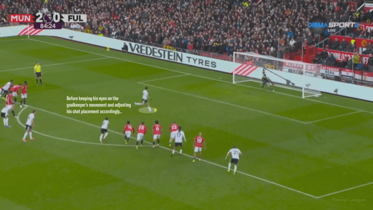 他在富勒姆和狼队各项赛事中主罚的22粒点球中,有20粒射向了门将的侧翼:9粒偏左,11粒偏右。剩下的两粒点球虽然可以算作低射正中,但都是在门将扑救后才入网。