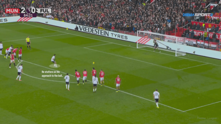 表面上看,依赖门将扑救的点球难度要大得多。但希门尼斯在这方面技艺精湛。周日对阵拉门斯的点球就证明了这一点:他可以等到助跑的最后一刻才出手,即便门将扑救方向正确,他的射门角度也高得惊人,直挂球门死角,几乎不可能扑救成功。