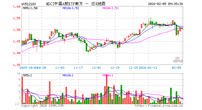 2月5日,MSCI中国A股ETF南方(512160)开盘跌0.26%,报1.506元。MSCI中国A股ETF南方(512160)重仓股方面,贵州茅台开盘跌0.33%,宁德时代涨0.20%,招商银行跌0.18%,工业富联跌2.13%,中国平安跌0.34%,紫金矿业跌2.63%,中际旭创涨0.18%,长江电力涨0.15%,农业银行涨0.00%,寒武纪跌1.68%。