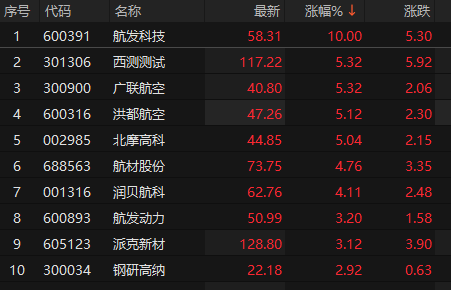 上证报中国证券网讯2月5早盘,大飞机概念股震荡走强,截至9时50分,航发科技涨停,西测测试、广联航空涨超5%,洪都航空、北摩高科、航材股份等跟涨。