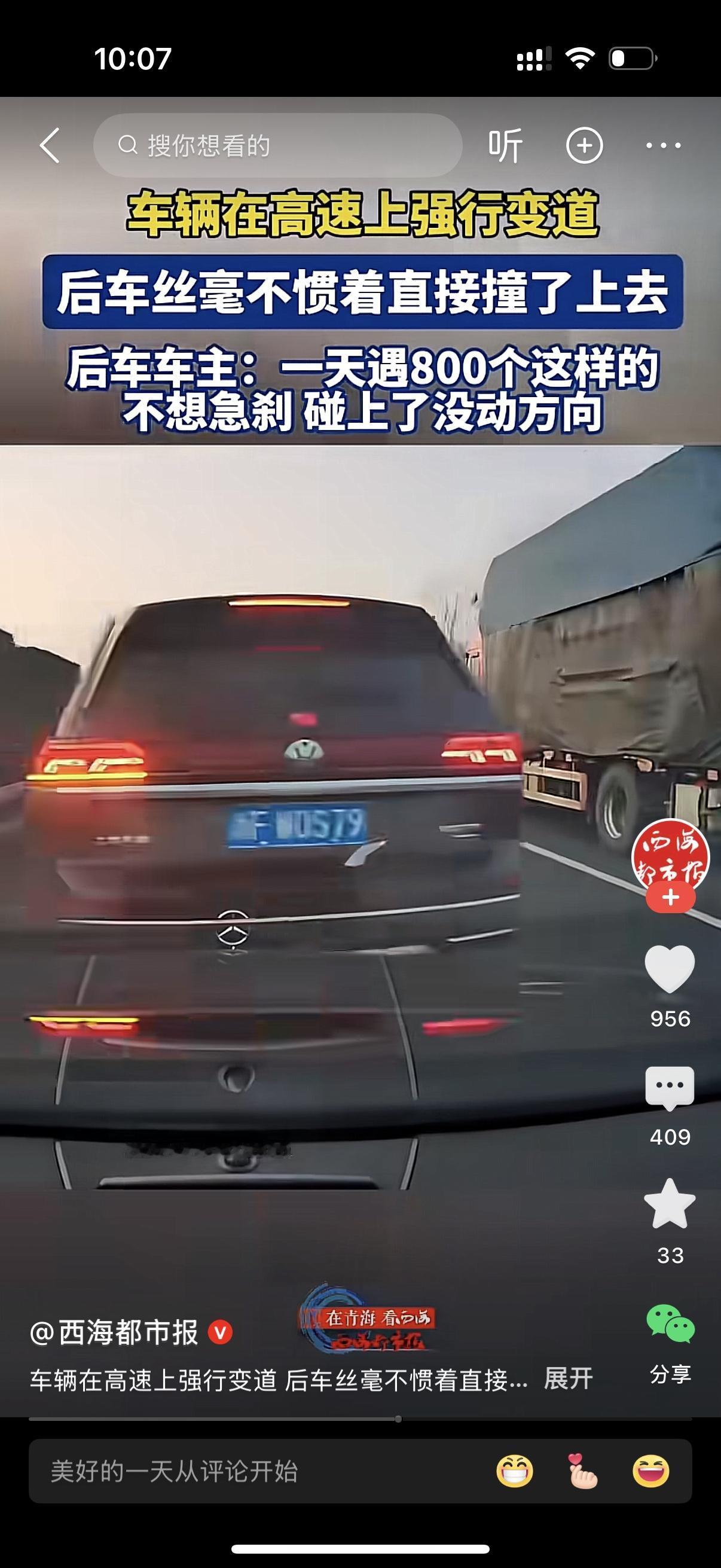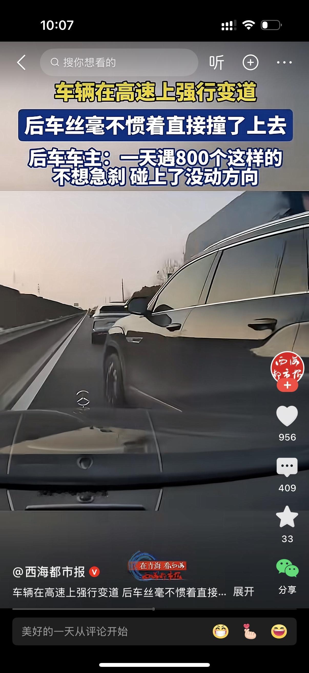 高速路况迷惑行为大赏,又双叒叕迎来一位强行加塞显眼包!这位大哥连转向灯都懒得拨,后视镜直接当装饰,一把方向就横切过来,把快车道当成自家车库随便拐,主打的就是一个无视交规、任性妄为。 后面的司机大哥可不吃这套,主打一个“不惯臭毛病”,既没慌里慌张急打方向盘避险,也没猛踩刹车降速,稳稳握住方向,“哐当”一声就完成了物理级别的交规教学。强行变道的车子当场被撞得车身一歪,刚才的嚣张劲儿瞬间烟消云散,只剩一脸懵圈。 事后被问及为啥不刹车避让,后车司机大哥一脸无奈又好笑地输出:“我这一天跑高速,能遇上800个这么瞎变道的,挨个急刹车我车胎都磨平了,人也吓出心脏病,实在不想刹了!” 一句话道出无数老司机的心声,加塞党天天搞突袭,谁的耐心也经不住这么造。 毕竟变道全责没跑,后车司机理直气壮不妥协,这一撞既治了加塞的坏毛病,也给全网司机出了口恶气。奉劝各位高速车主,变道先观察,打灯再变道,遇上不惯着你的老司机,下一个被“硬核教育”的就是你!