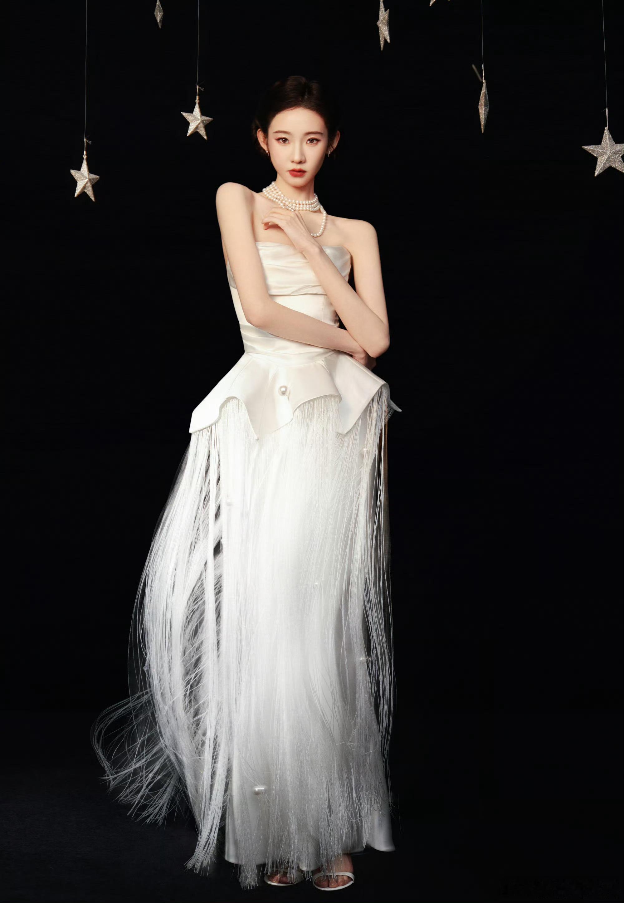 张艺凡大家帮我选一选戴不戴帽子张艺凡珍珠流苏白裙