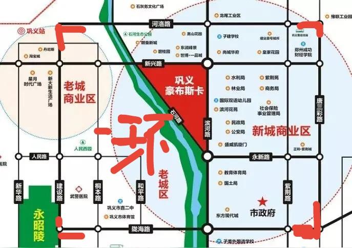 从郑州商代都城遗址平面图上看,当年商汤王打造的郑州商都内城完全是一座方城,这为以后的汉唐长安城、洛阳城,元明清北京城建设提供了模板! 巩义市一环城区也是一座方城!