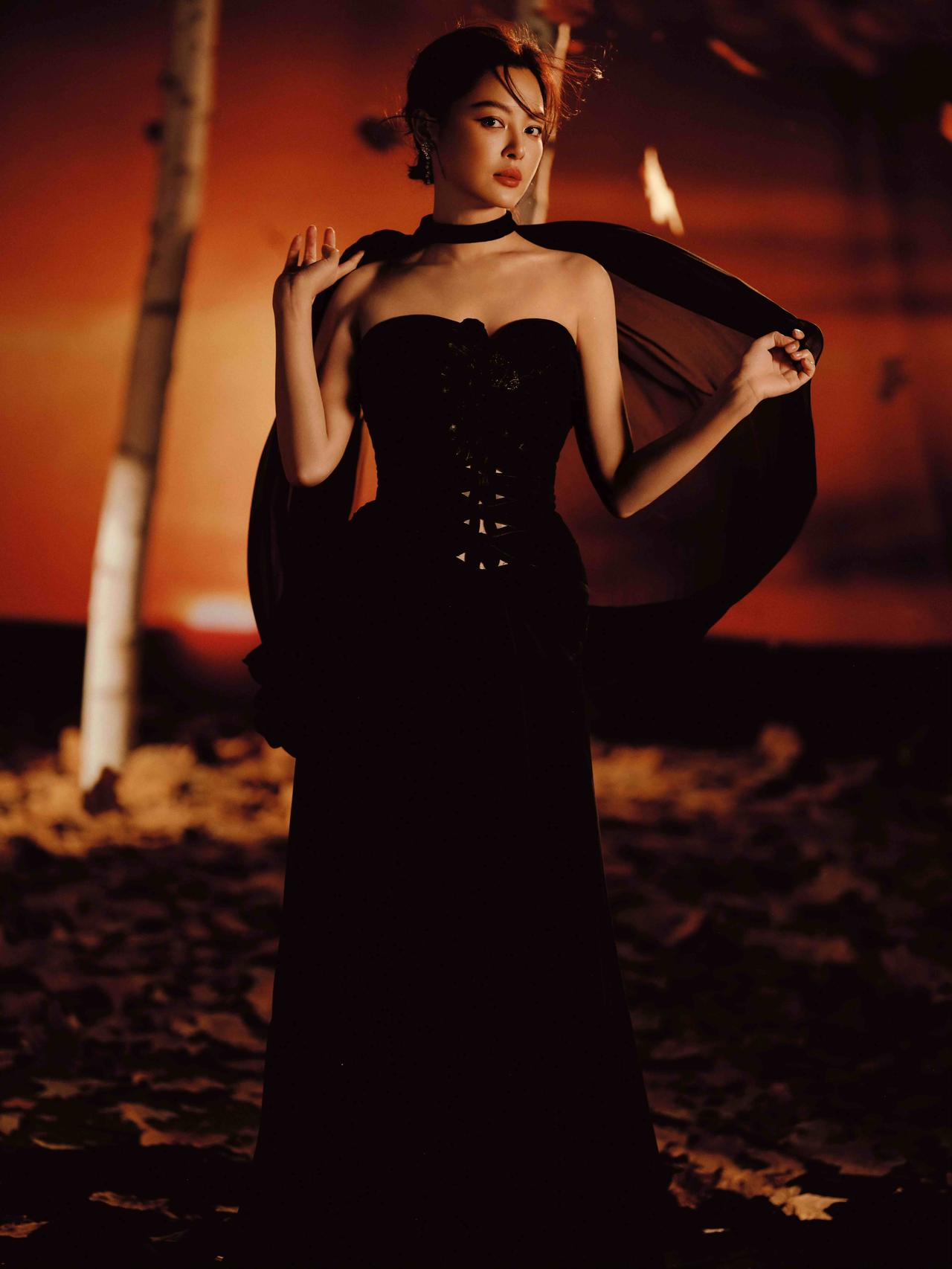 卢昱晓红裙穿搭写真,入青云明意可冷酷可娇俏。卢昱晓