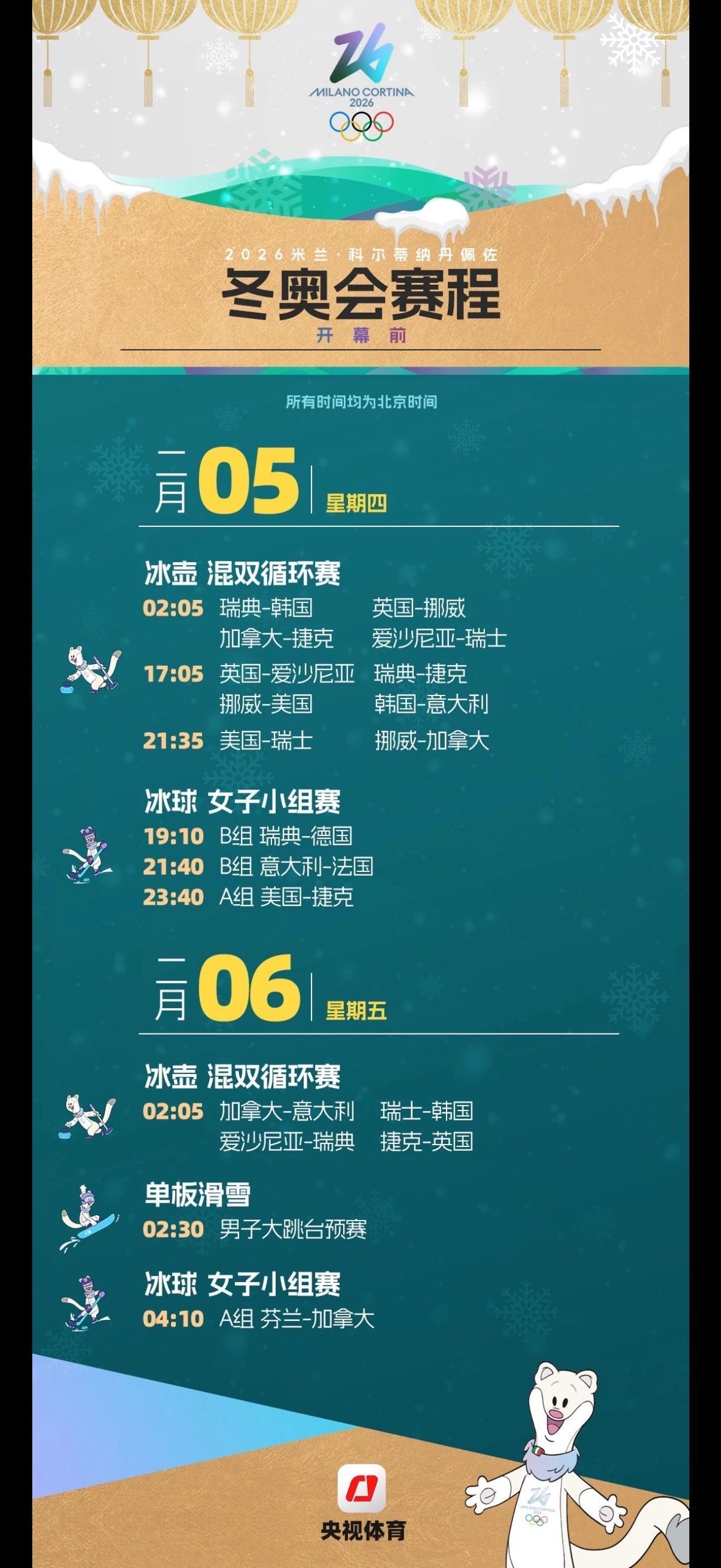 米兰冬奥会有哪些看点 首日比赛看点就满满当当,可是!精彩的基本都在凌晨,又要当夜猫子了,根据央视体育发布的首日赛程,除了冰壶和冰球循环赛以及开幕式之外,就是北京时间2月6日凌晨2点30分的男子大跳台预赛,苏翊鸣将领衔中国队众将参赛,期待弟弟的精彩表演!冬奥会