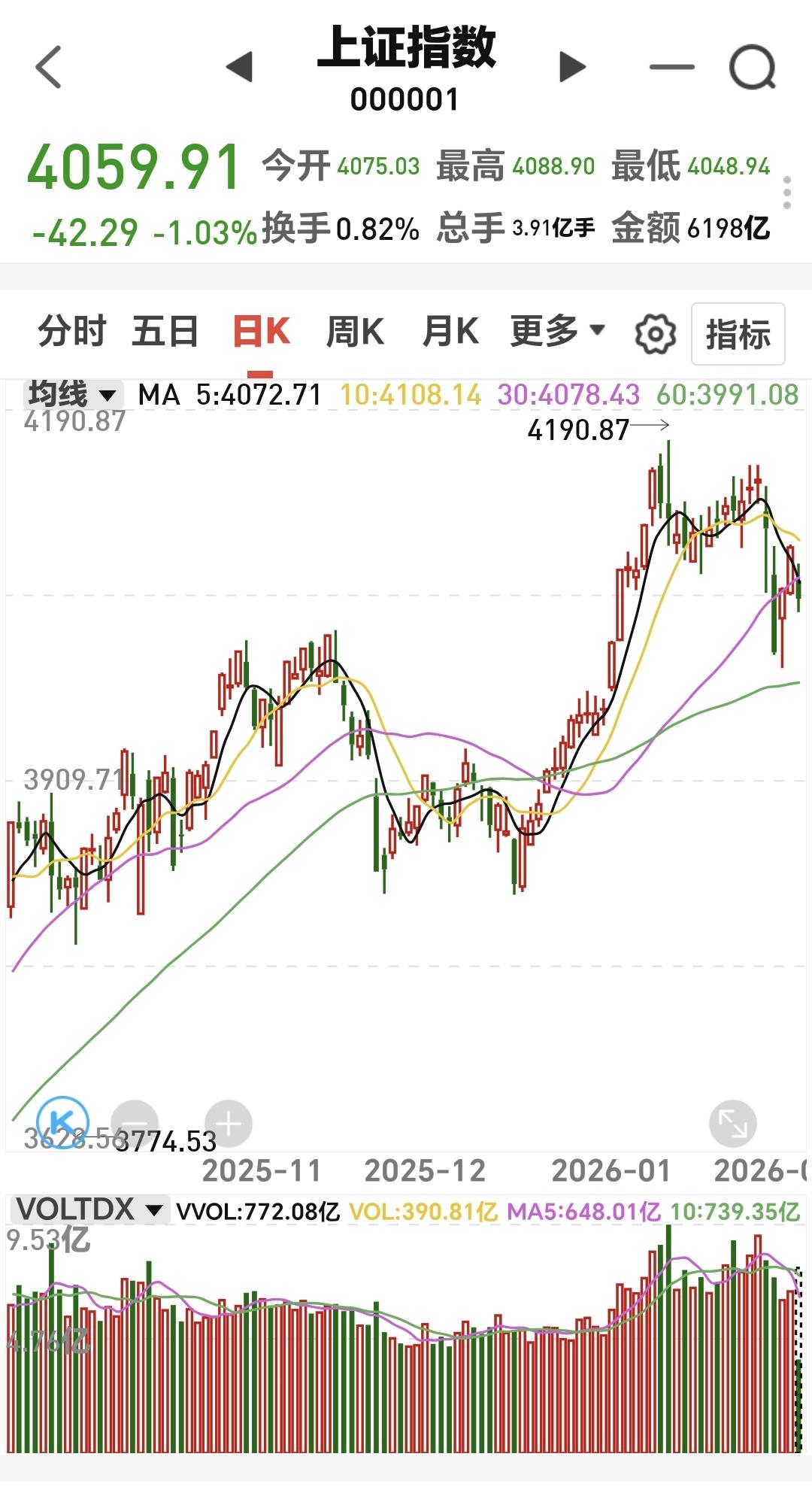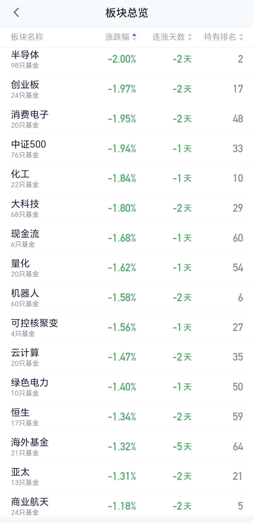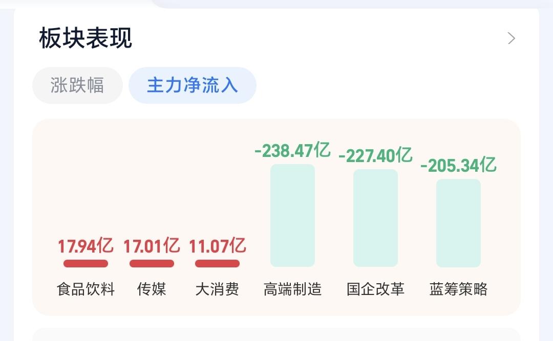 基金:半导体板块连续下跌,究竟应该怎么办 今天市场低开以后震荡向下,中午收盘的时候三大指数下跌幅度都超过了1%以上,创业板指下跌了1.94%,收于3247点,上证指数下跌了1.03%,收于4059点。 中午收盘的时候,黄色线还是在蓝色线上方,但两条线之间的敞口已经缩小,五天线位置是4072点,收盘点位4059点,收在五天线之下,两市累计成交14475亿,相比于昨天同期缩量了10%,市场上涨1600多家,下跌3700多家,涨停44家,跌停20家,主力资金净流出702亿。 看下面的截图6,这是主力资金进出板块的情况,主力资金净流入最多的三个板块是:食品饮料板块,传媒板块,大消费板块,主力资金净流出最多的三个板块是:高端制造板块,国企板块,蓝筹策略板块。 持有的基金中,估值上涨的只有消费板块和白酒板块,下跌幅度最大的三个板块是:新能源汽车板块,先进制造板块,半导体板块,估值整体亏损了1.01万元。 所有的基金中,今天上涨5458家,下跌13591家,没有上涨幅度超过5%的基金,下跌幅度超过5%的有170家。 上涨幅度排在前三位的是:银行板块,油气资源板块,白酒板块,下跌幅度排在前三位的是:黄金板块,光伏板块,稀土永磁板块。 半导体板块今天也是下跌的,中午收盘的时候下跌了2%,这是连续第2个交易日下跌,持有人数在所有板块当中排名第二位。 看下面的截图13,这是半导体板块日K线图,星期一的时候下跌跌破了上涨通道的下轨线,现在是处于有效破位当中,想进场的人还需要耐心等待。 看下面的截图14,这是半导体板块周K线图,现在的位置处于上涨通道上方,还处于上涨趋势中,长线持有的人继续持有。 持有半导体板块的人比较多,我现在是半仓持有,持有半仓是因为大方向向上,另外的半仓是在等机会进场,如果你认为大方向不是向上,你完全可以空着,在大方向向上的情况之下,空着是不对的。 花一秒钟点赞,花30秒钟评论,就是对我最大的支持,谢谢大家的支持。