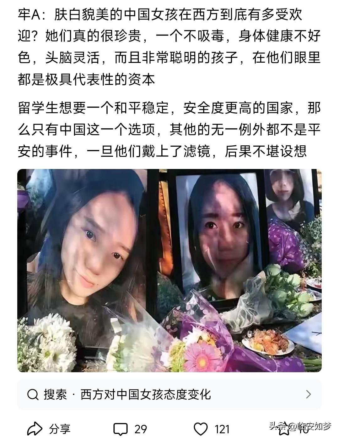 欧美对亚洲黄种人是有根深蒂固的偏见。尤其是年纪大一些的人眼里,他们对黄种人女性有一种非常表态的征服欲。欧美的很多影视作品里,黄种人女性温柔贤淑任劳任怨,而男性类似于清朝太监猥琐自私自利。类似电影西贡小姐里美国大兵对他们的越南女友那样。 所以我还是奉劝那些女留学生,在面对白男的热情时,最好慎重考察,看看人家到底是出于真心还是玩玩而已。