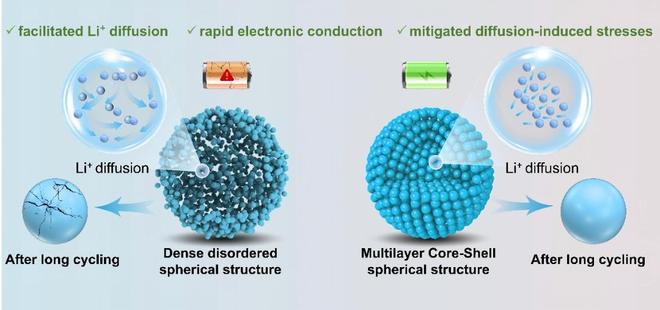 新型电极材料结构同步实现内部应力缓解与锂快速传输